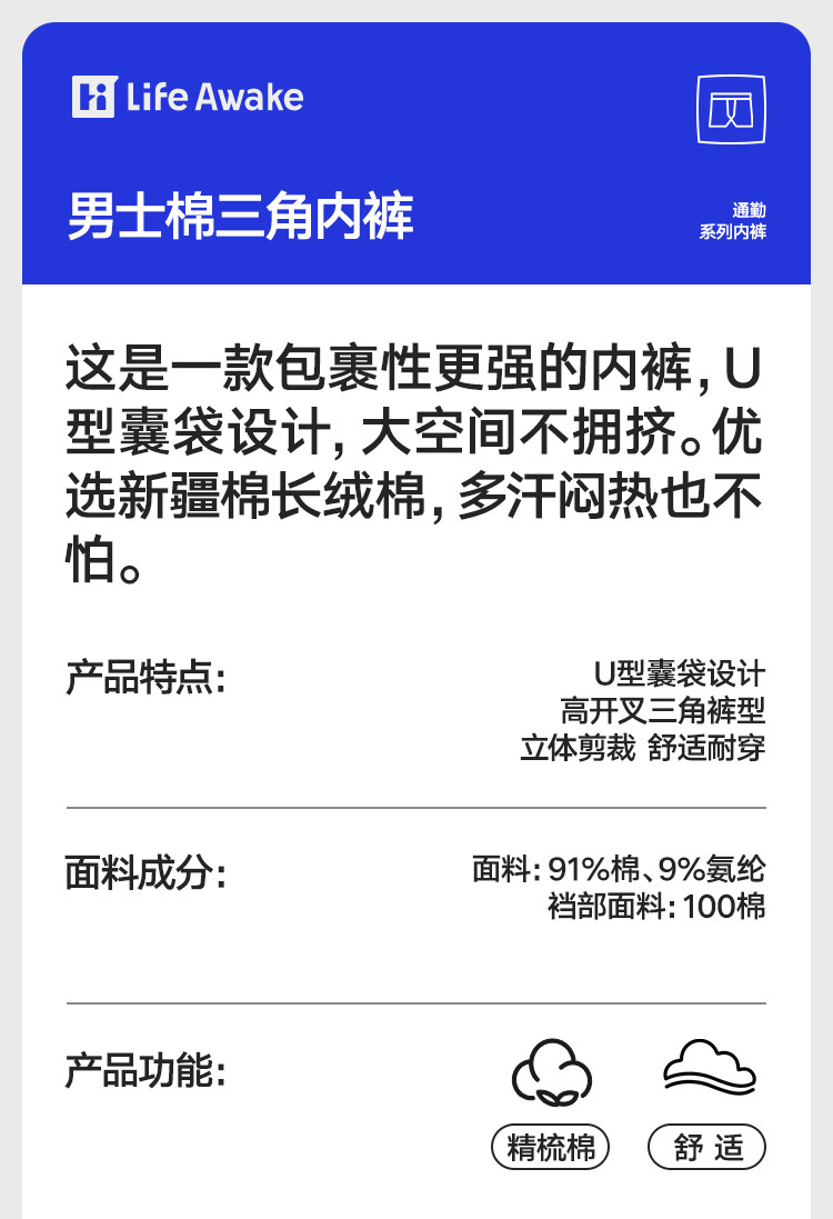 商品名称:【2条装 新疆棉】男士三角内裤棉质柔软舒适透气三角短裤不卡档 974682