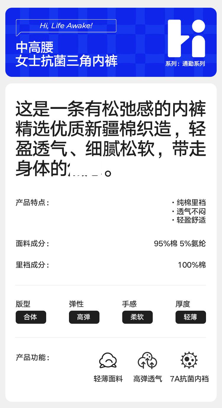 商品名称:【95%棉 7A抑菌裆】 3条装女士内裤高弹透气女生三角短裤 814618