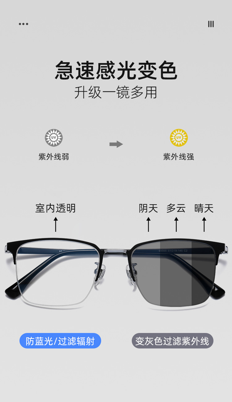 商品名称:【防蓝光可变色】光学镜架眼镜女防辐射眼镜框男士眼镜框平光镜女 305156