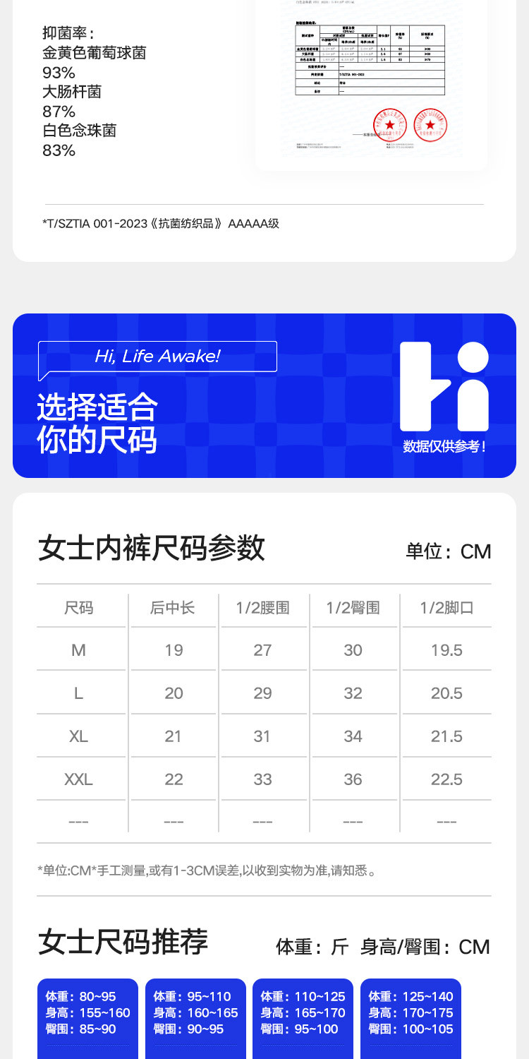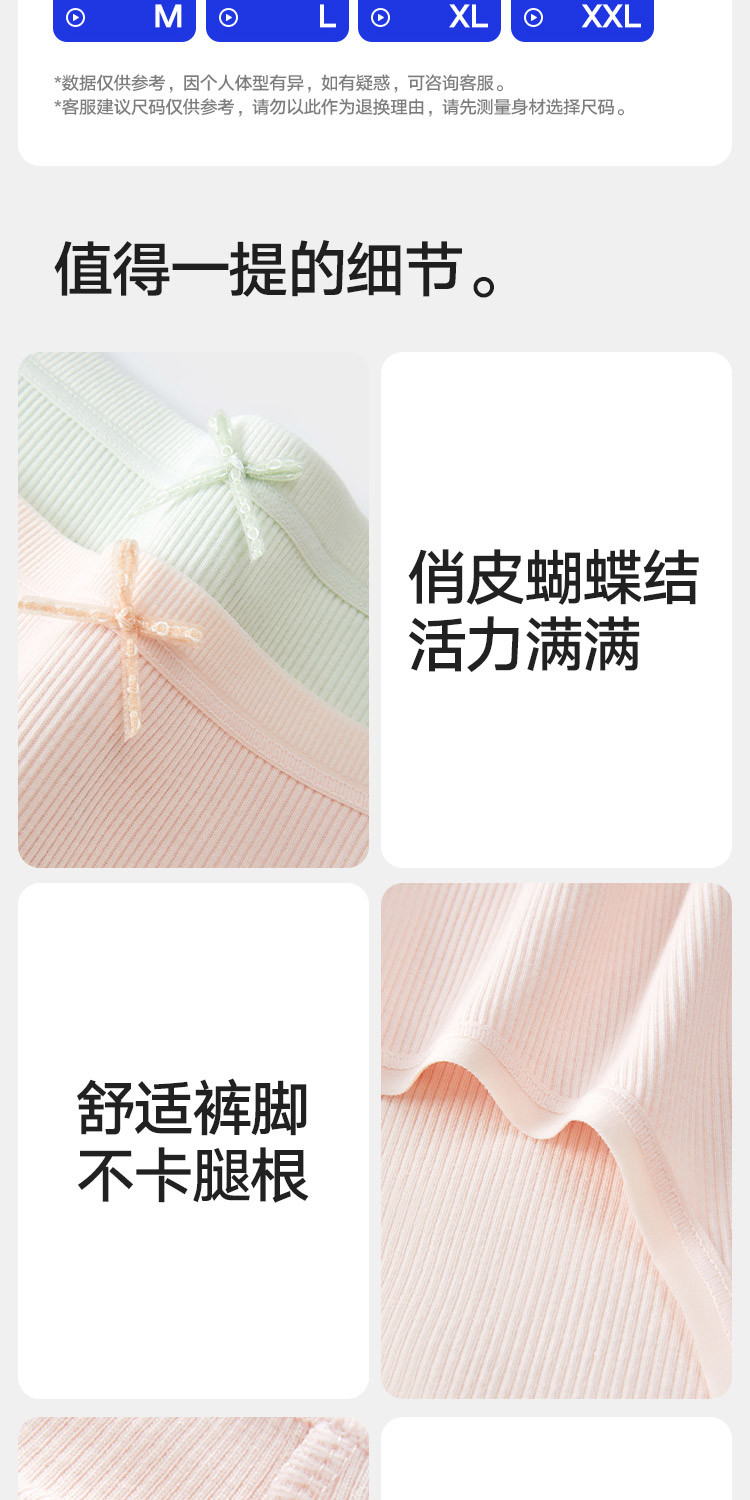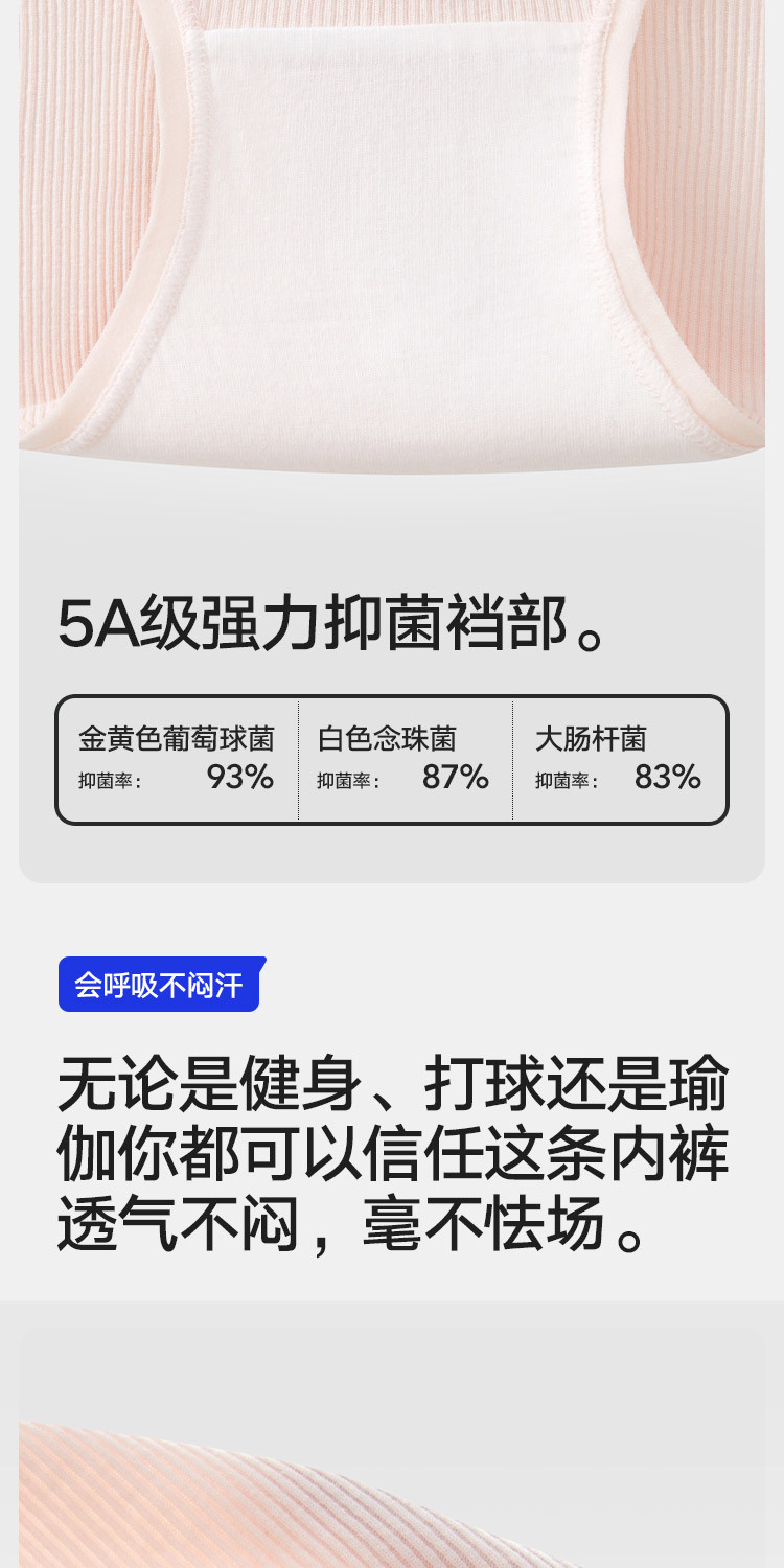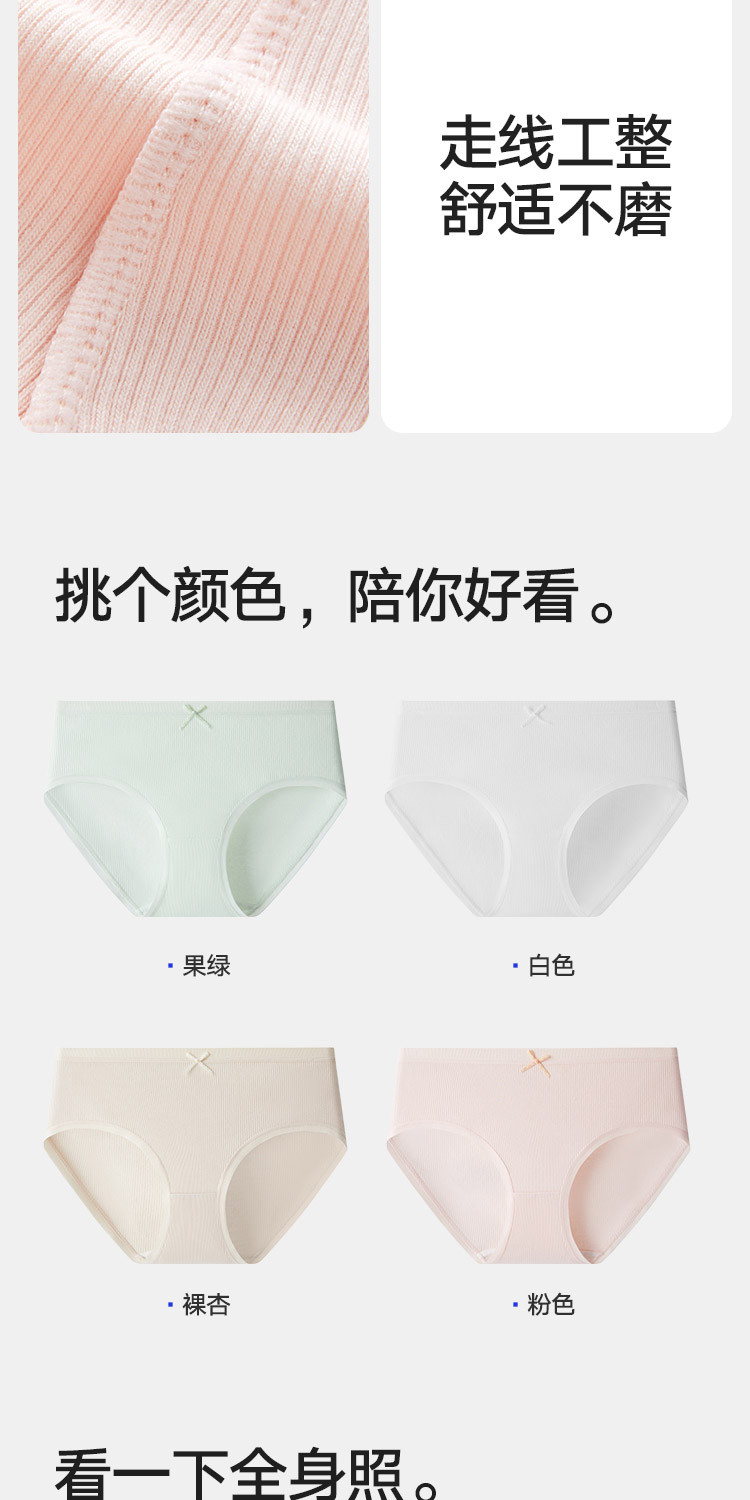 商品名称:【5A抑菌 100%纯棉裆】3条装女士中腰三角内裤透气短裤女 925018