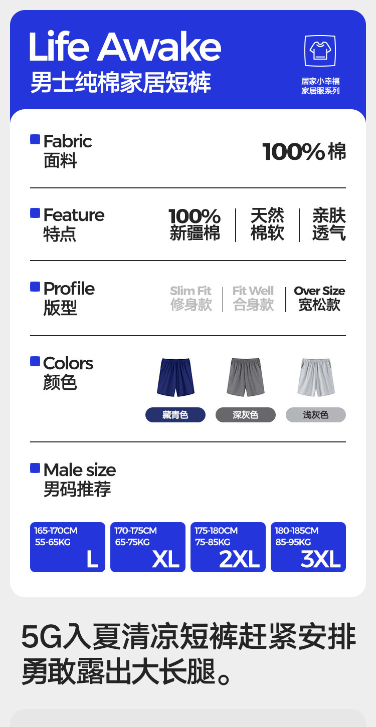 商品名称:【100%新疆棉】男士睡裤纯棉短裤夏季薄款家居裤男外穿大裤衩 501466
