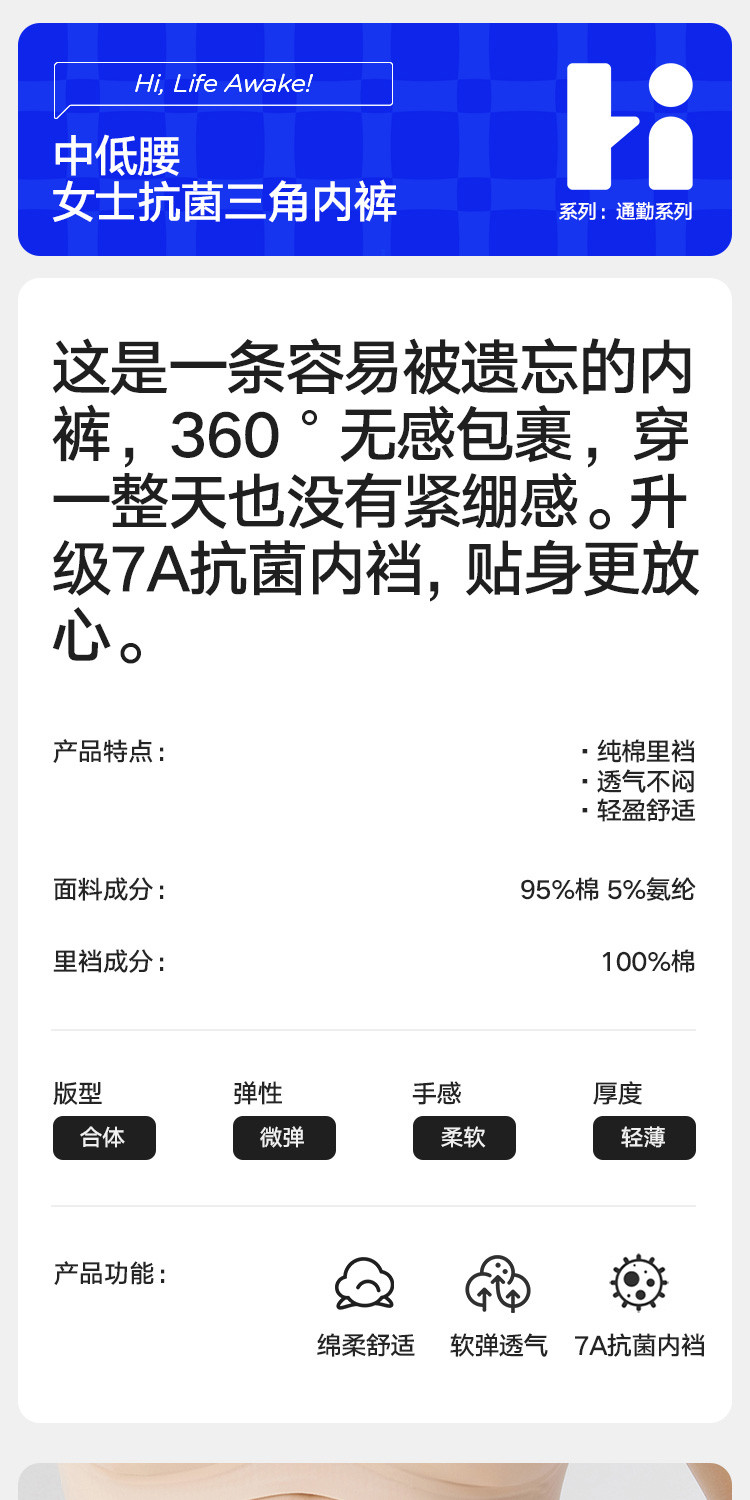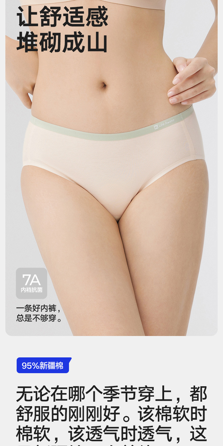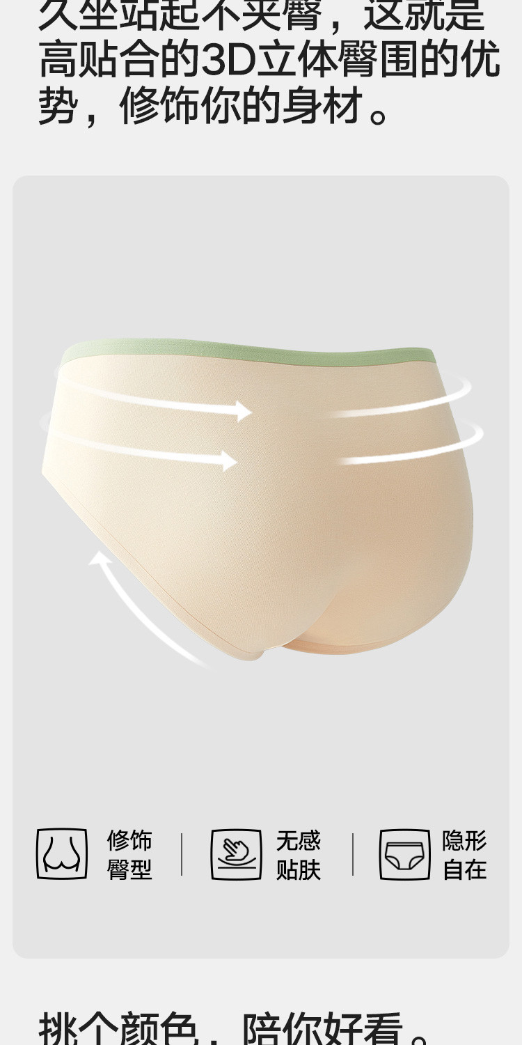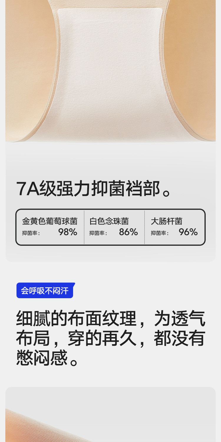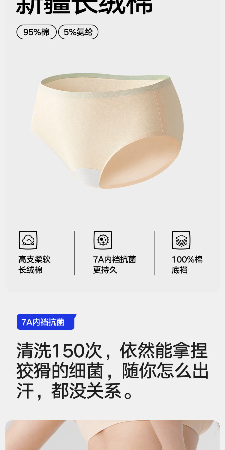 商品名称:【7A抑菌 100%纯棉裆】3条装女士内裤无痕透气三角短裤女 851482