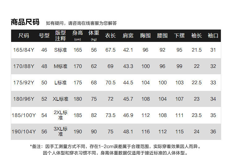 | 尺码 | 衣长(cm) | 肩宽(cm) | 腰围(cm) | 袖长(cm) | 胸围(cm) | 下摆围(cm) | 号型 |