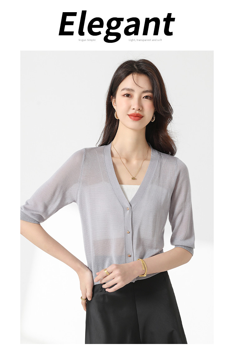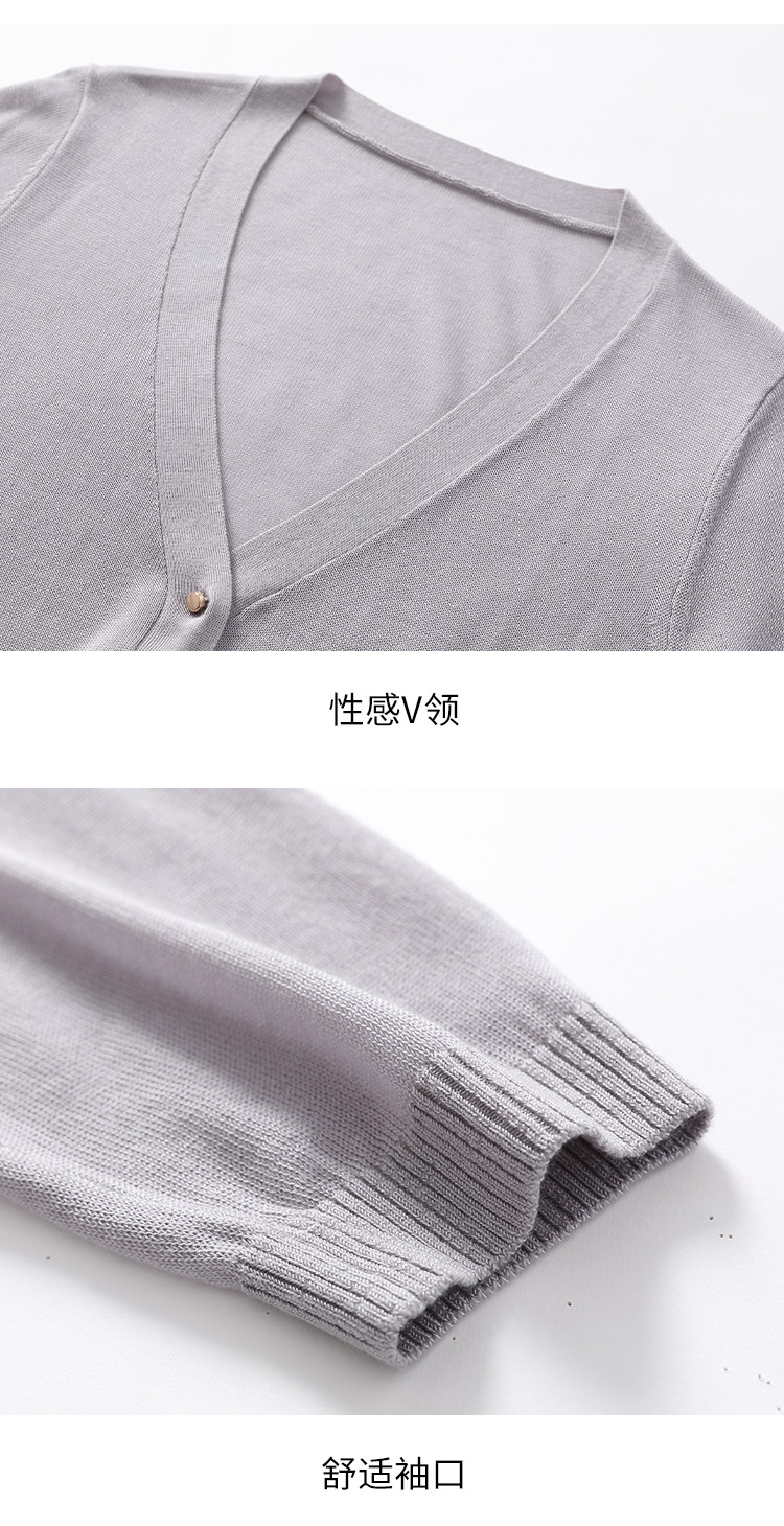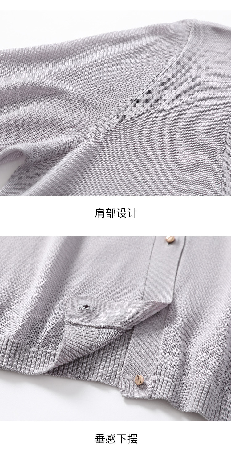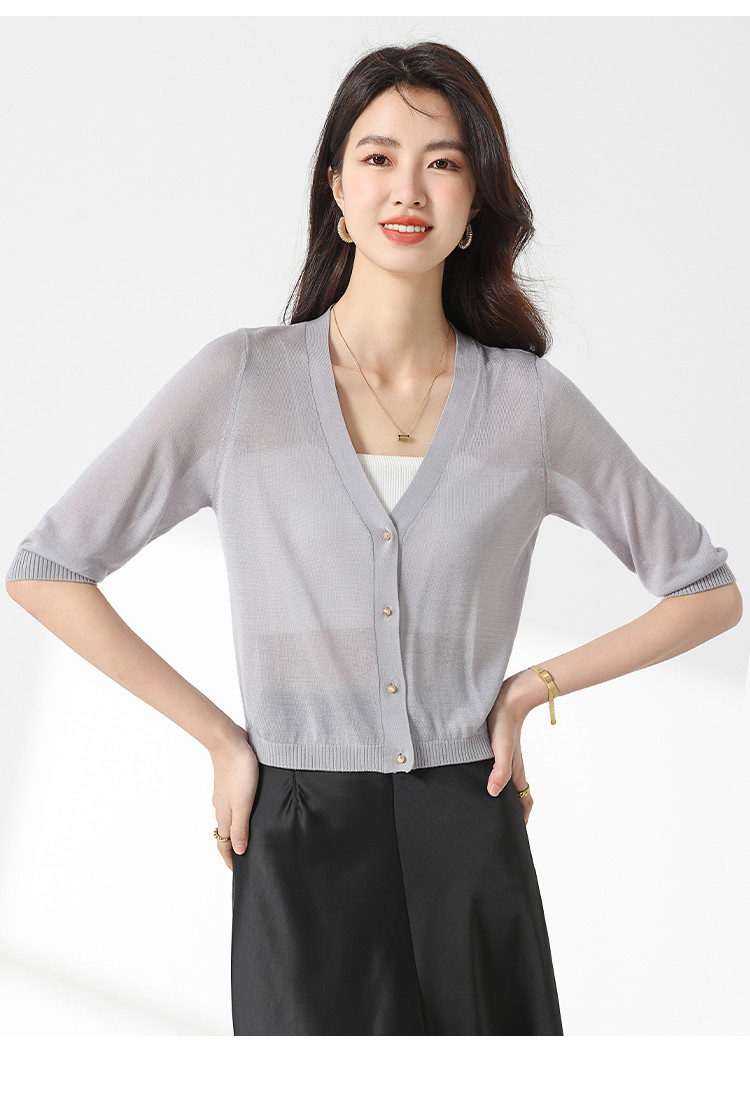 商品名称:【含桑蚕丝 纯色百搭】时尚中袖透气亲肤针织开衫空调衫女夏 810451