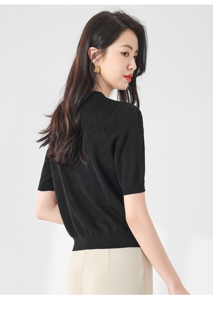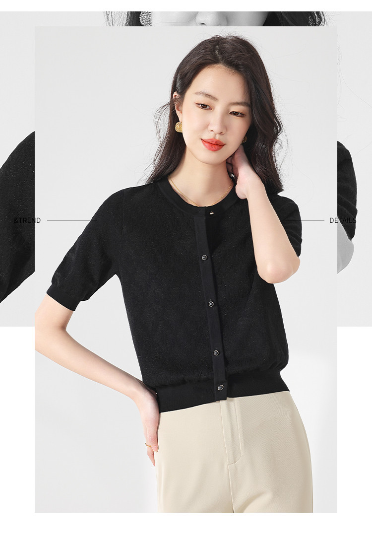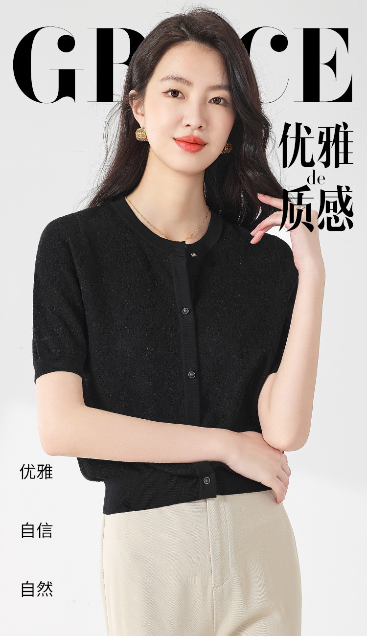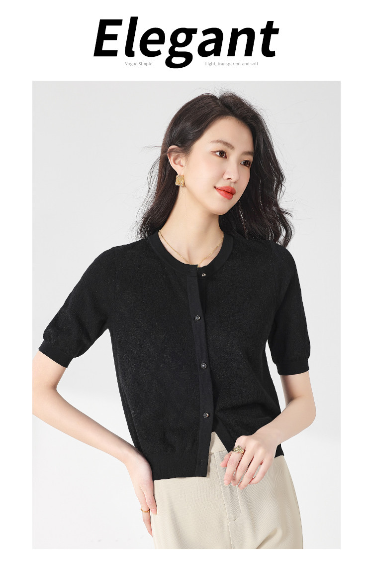 商品名称:轻薄纯色提花含桑蚕丝针织衫女开衫打底短袖T恤空调衫小外套夏 880083