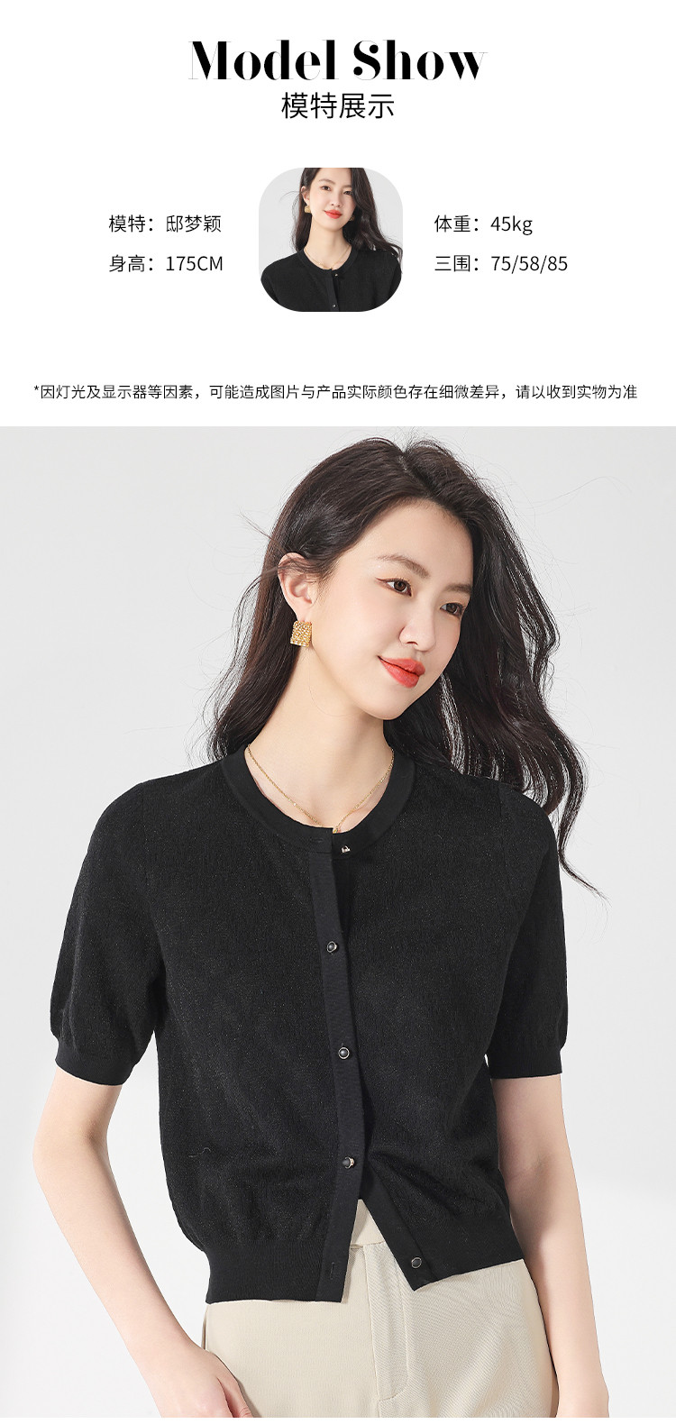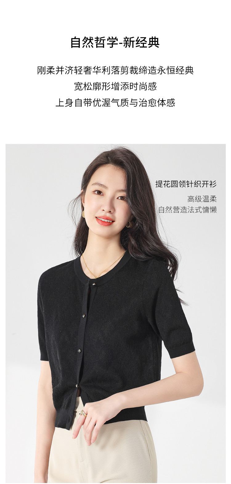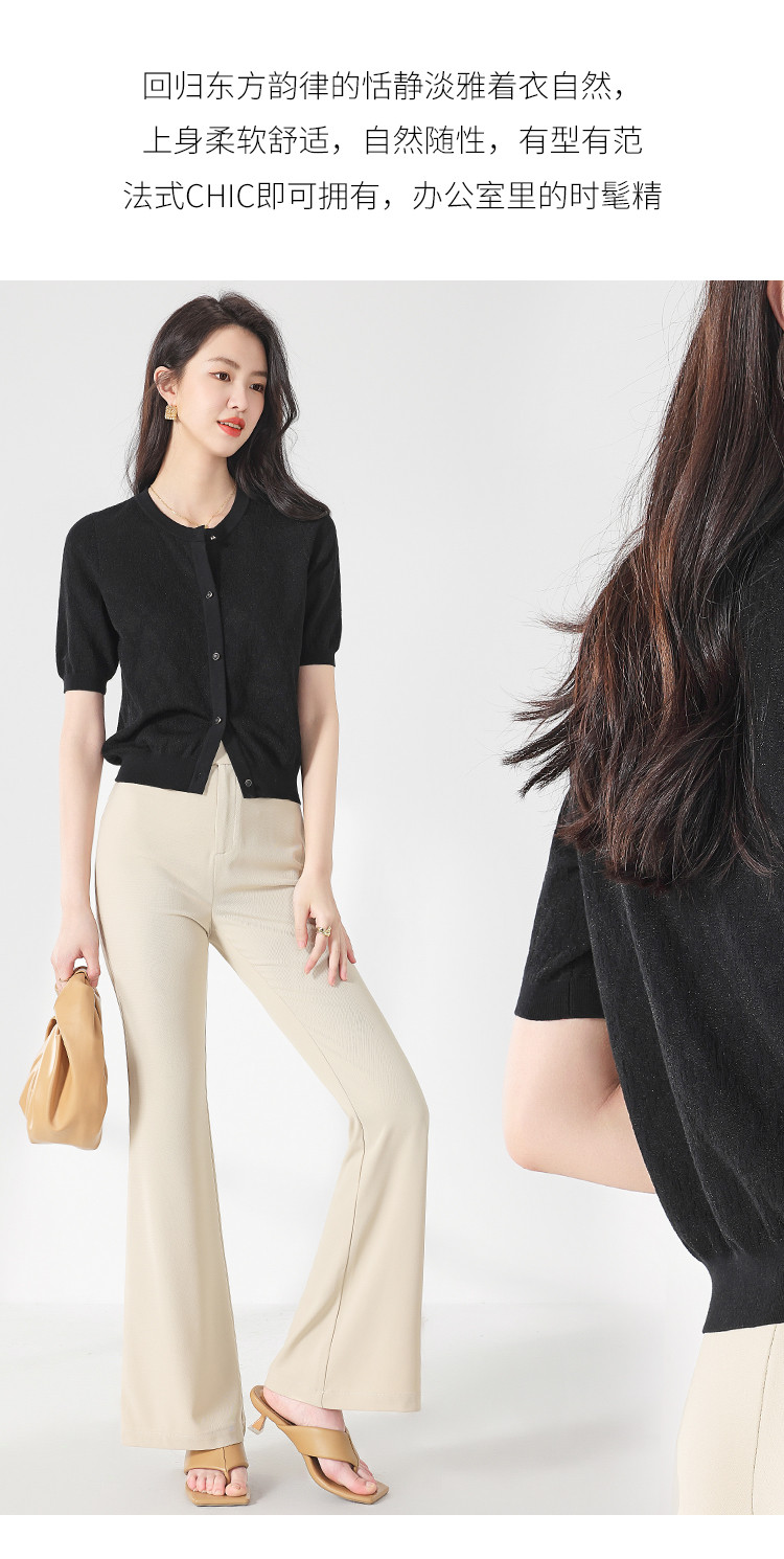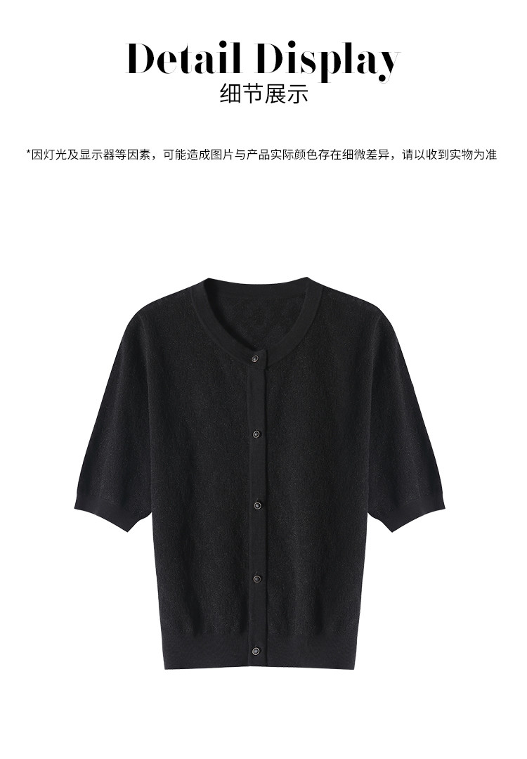 商品名称:轻薄纯色提花含桑蚕丝针织衫女开衫打底短袖T恤空调衫小外套夏 880083