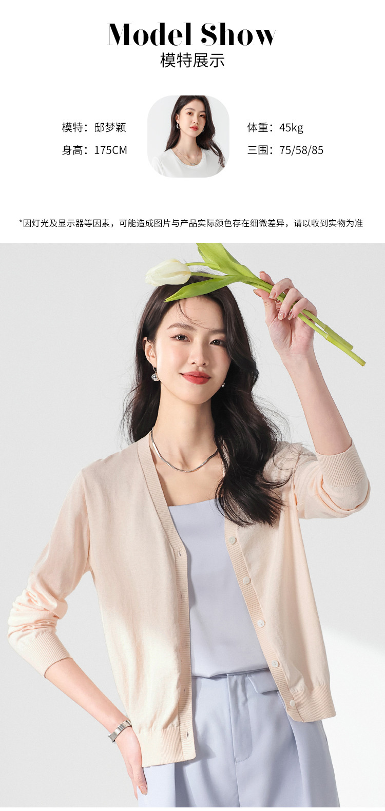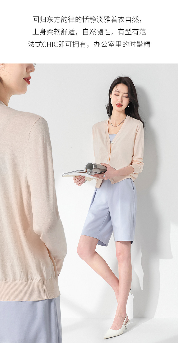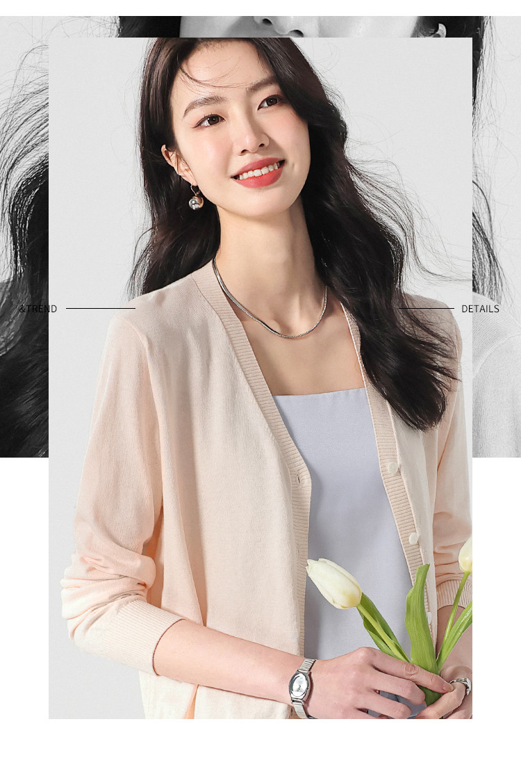 商品名称:夏款轻薄透气纯色V领桑蚕丝针织衫女开衫披肩毛衣外套空调衫 309651