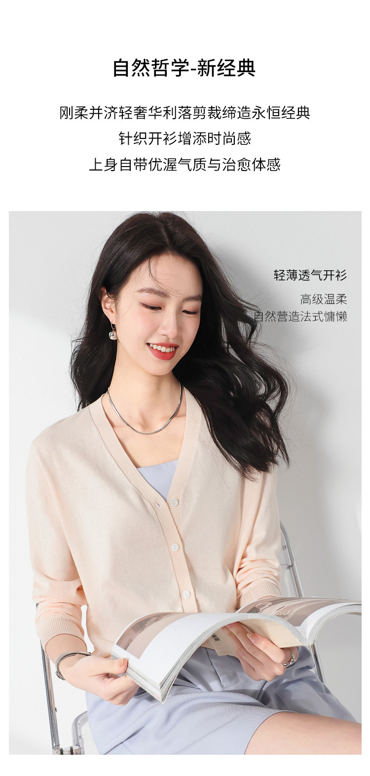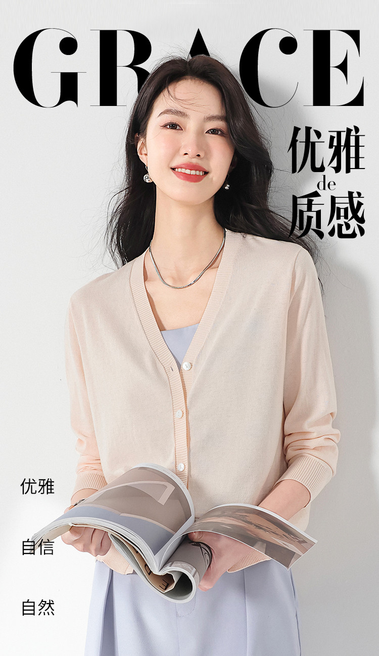 夏款轻薄透气纯色V领桑蚕丝针织衫女开衫披肩毛衣外套空调衫 309651