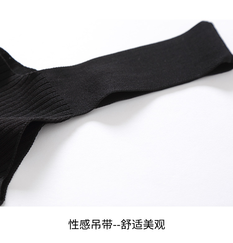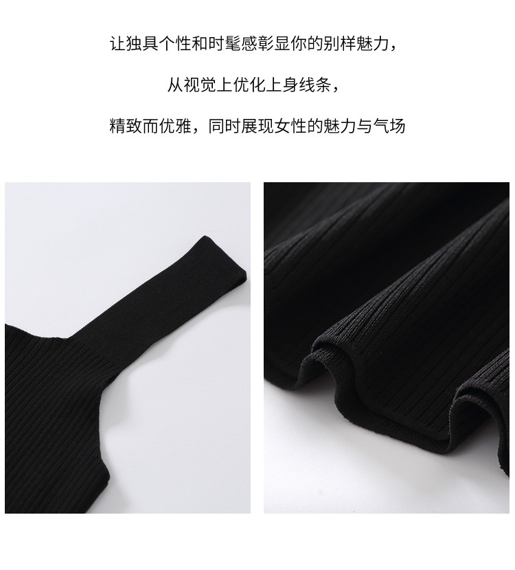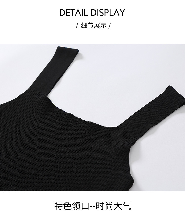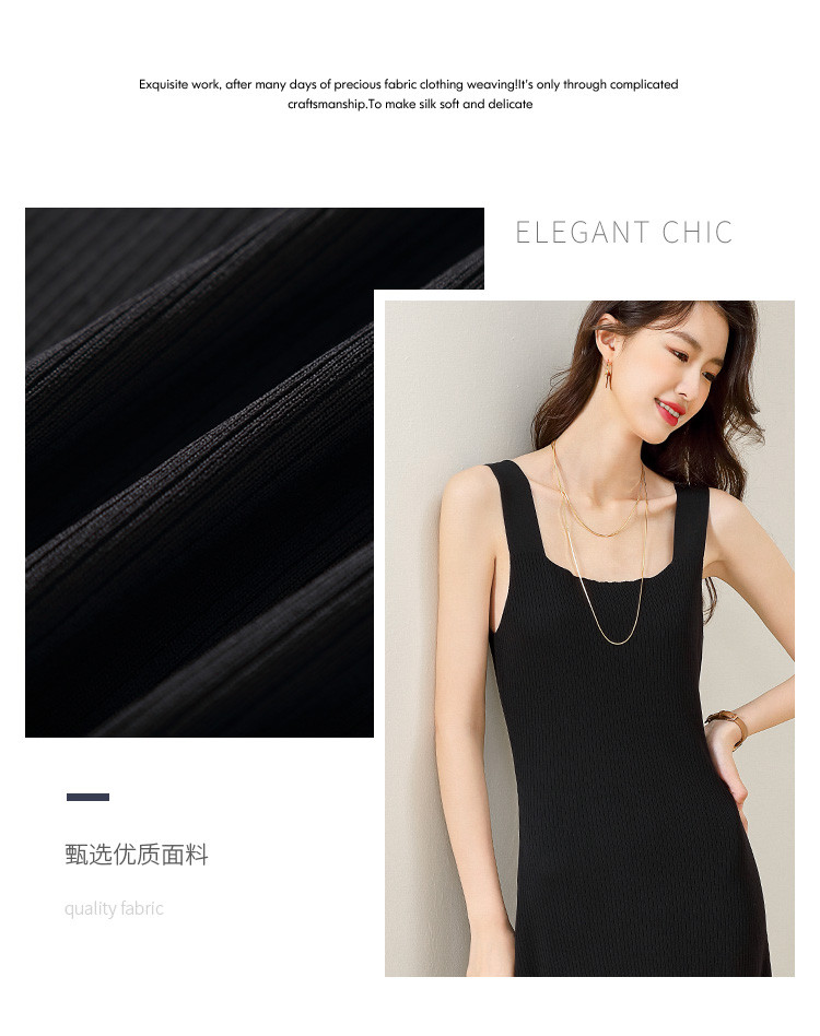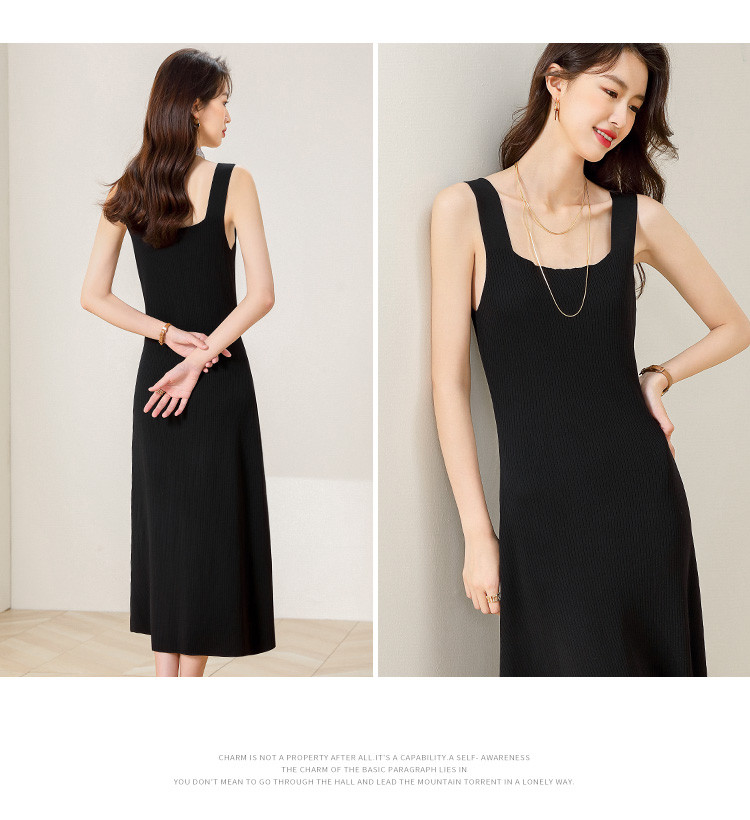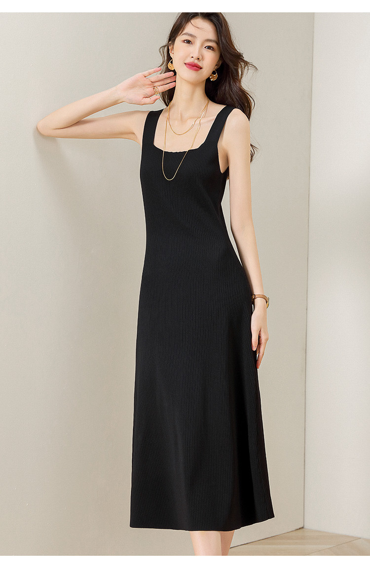 商品名称:【优雅淑女】简约百搭纯色方领收腰中长款无袖吊带针织连衣裙 141011