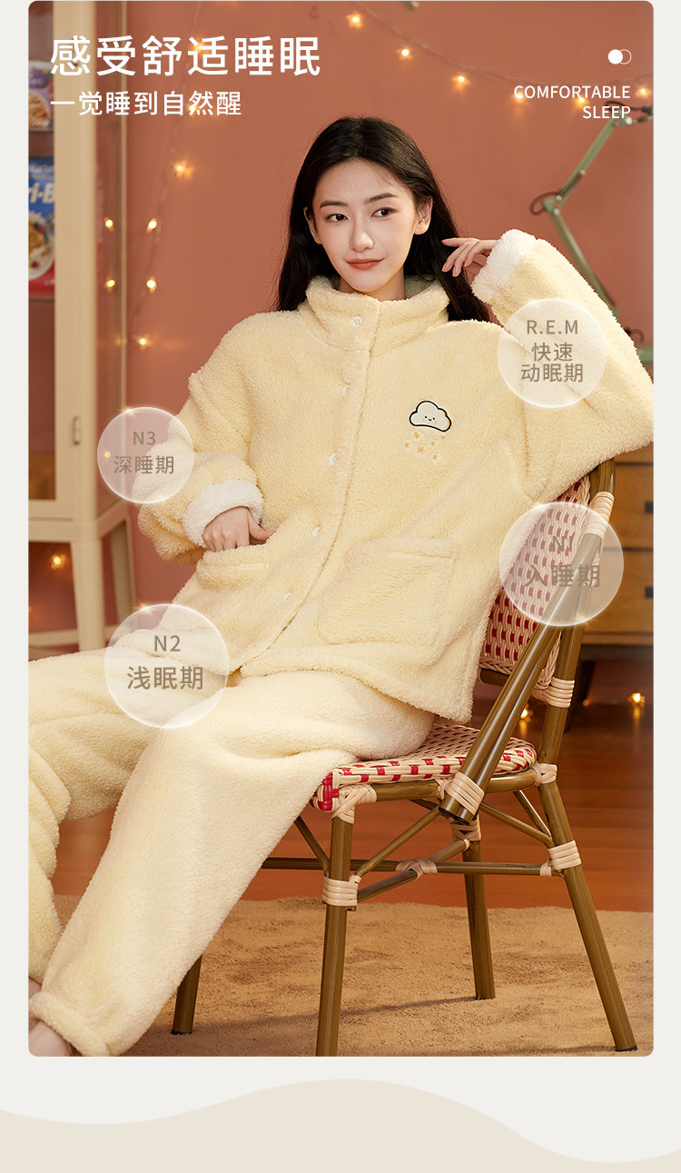 商品名称:【加绒】舒适柔软半高领亲肤保暖睡衣女士家居服长袖套装 172875