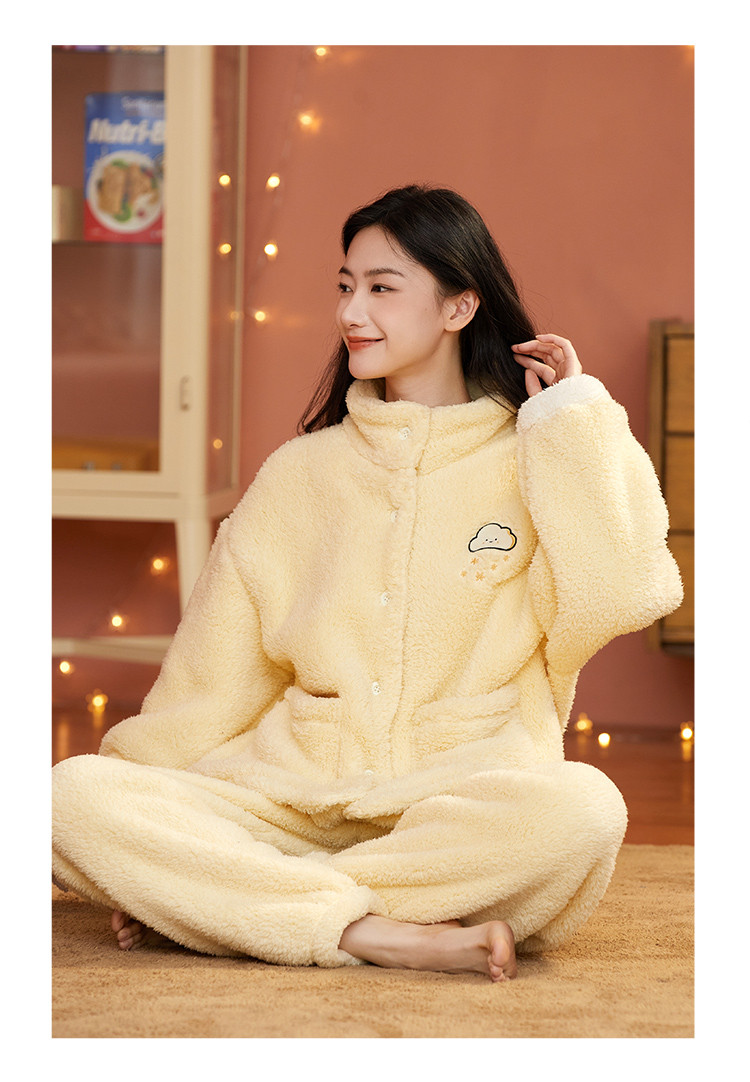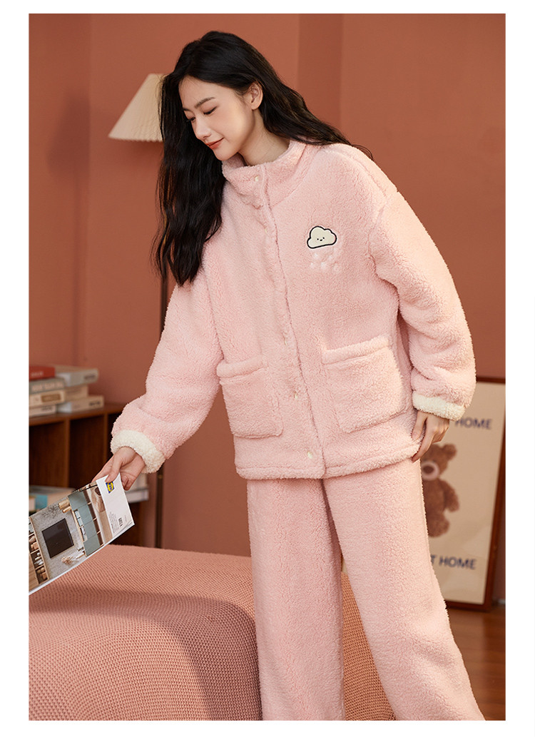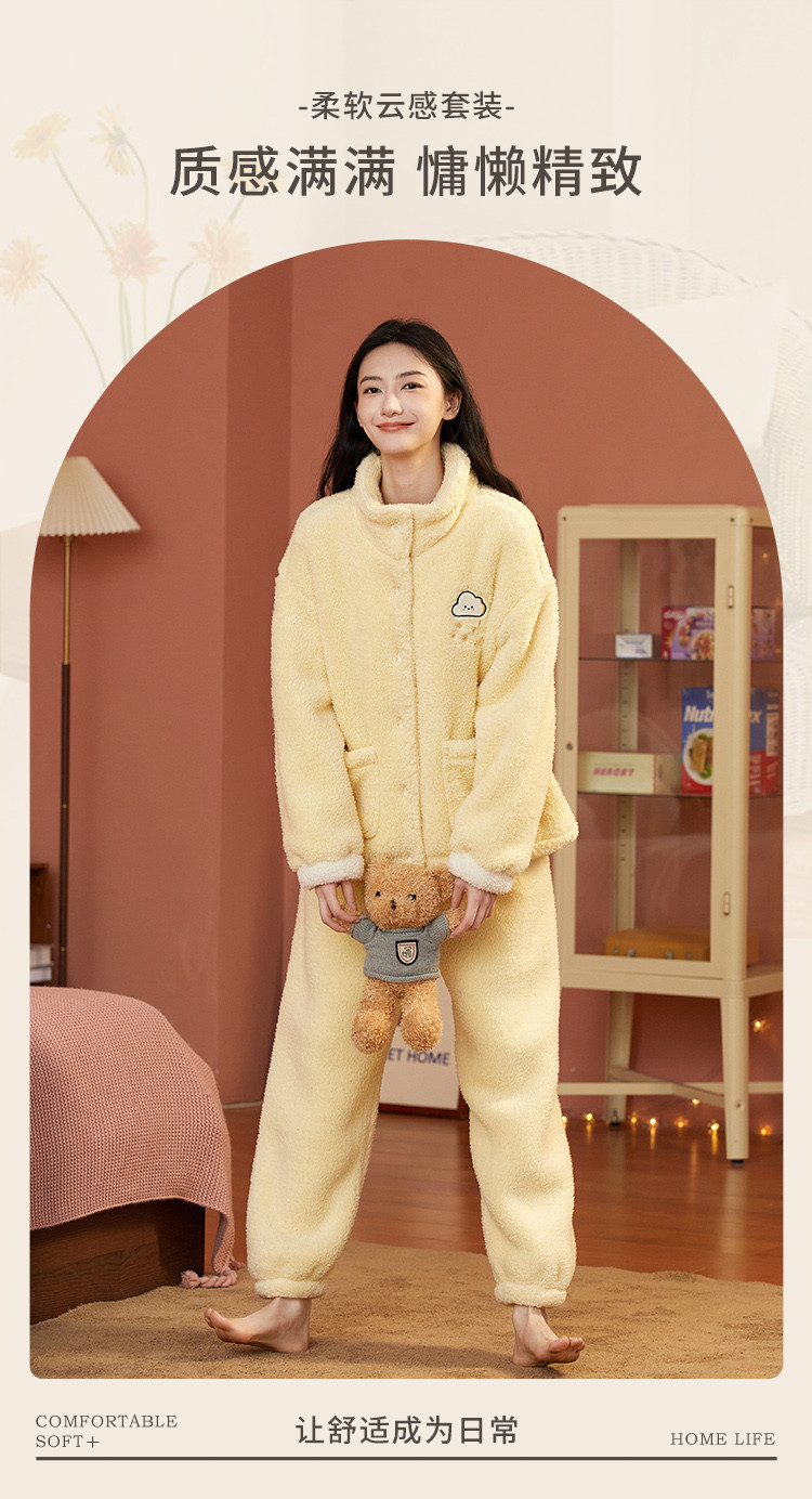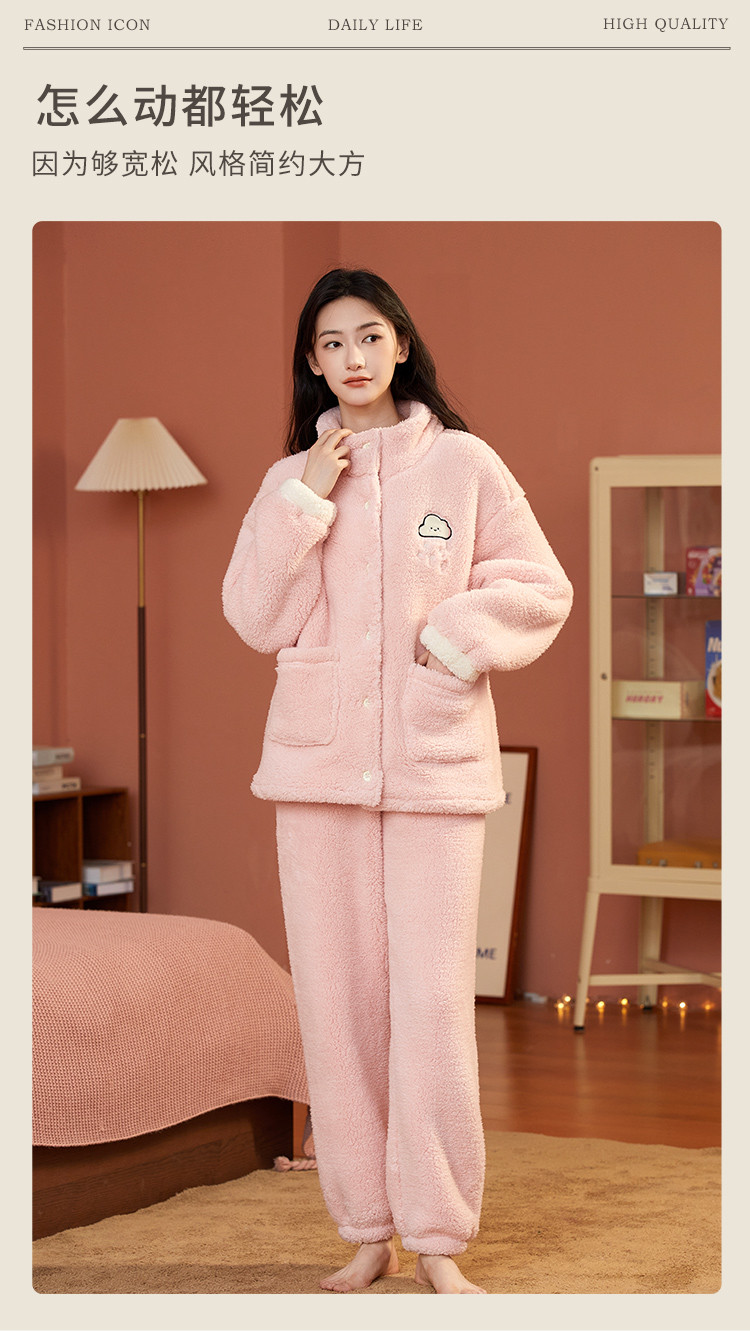 【加绒】舒适柔软半高领亲肤保暖睡衣女士家居服长袖套装 172875