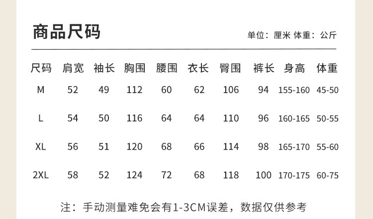 尺码 肩宽(cm) 袖长(cm) 上装号型 下装号型 衣长(cm) 身高(cm) 腰围(cm) 裤长(cm) 体重(kg) 臀围(cm) 胸围(cm) 号型