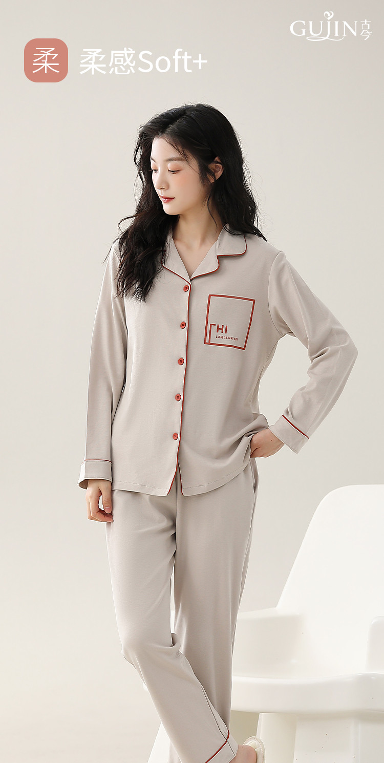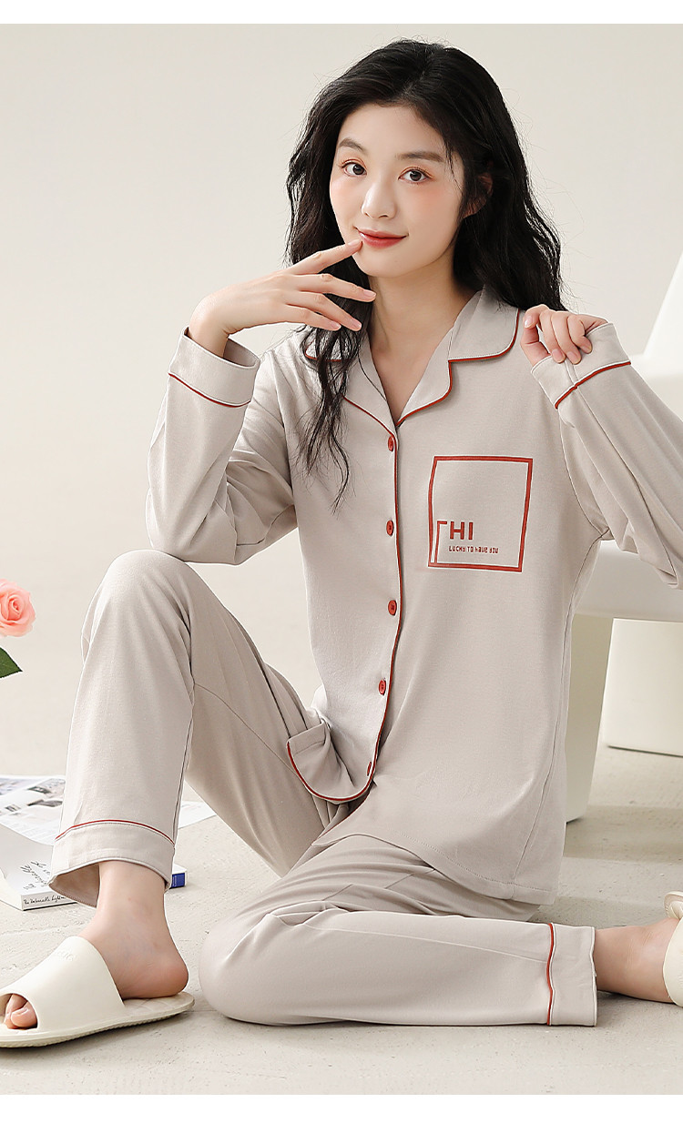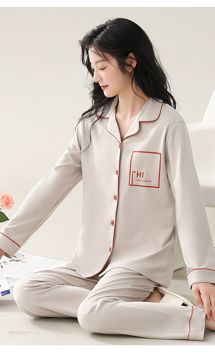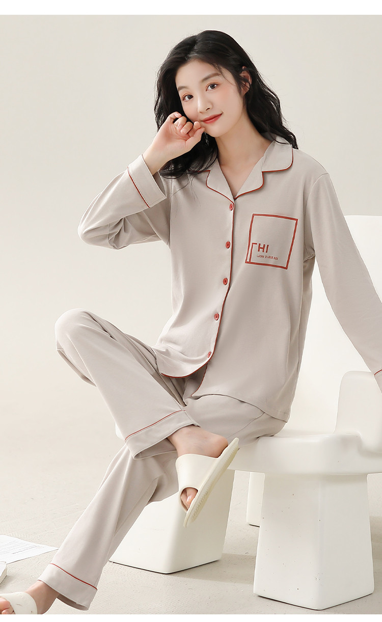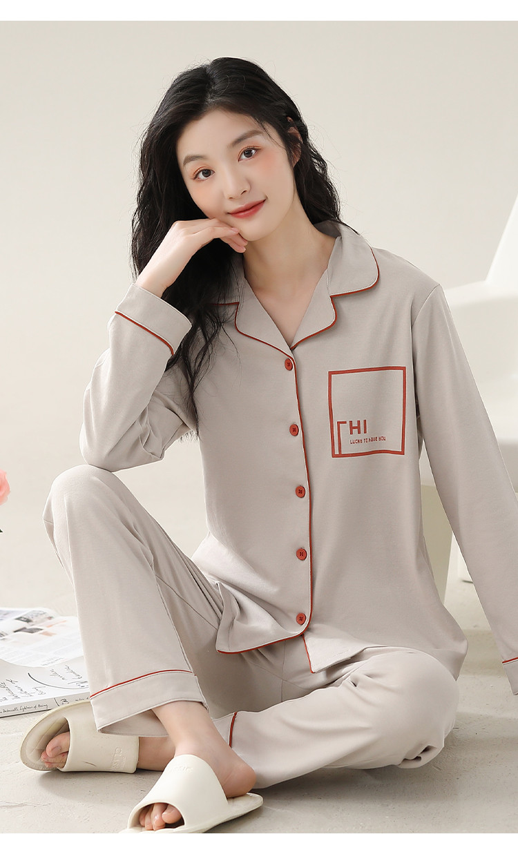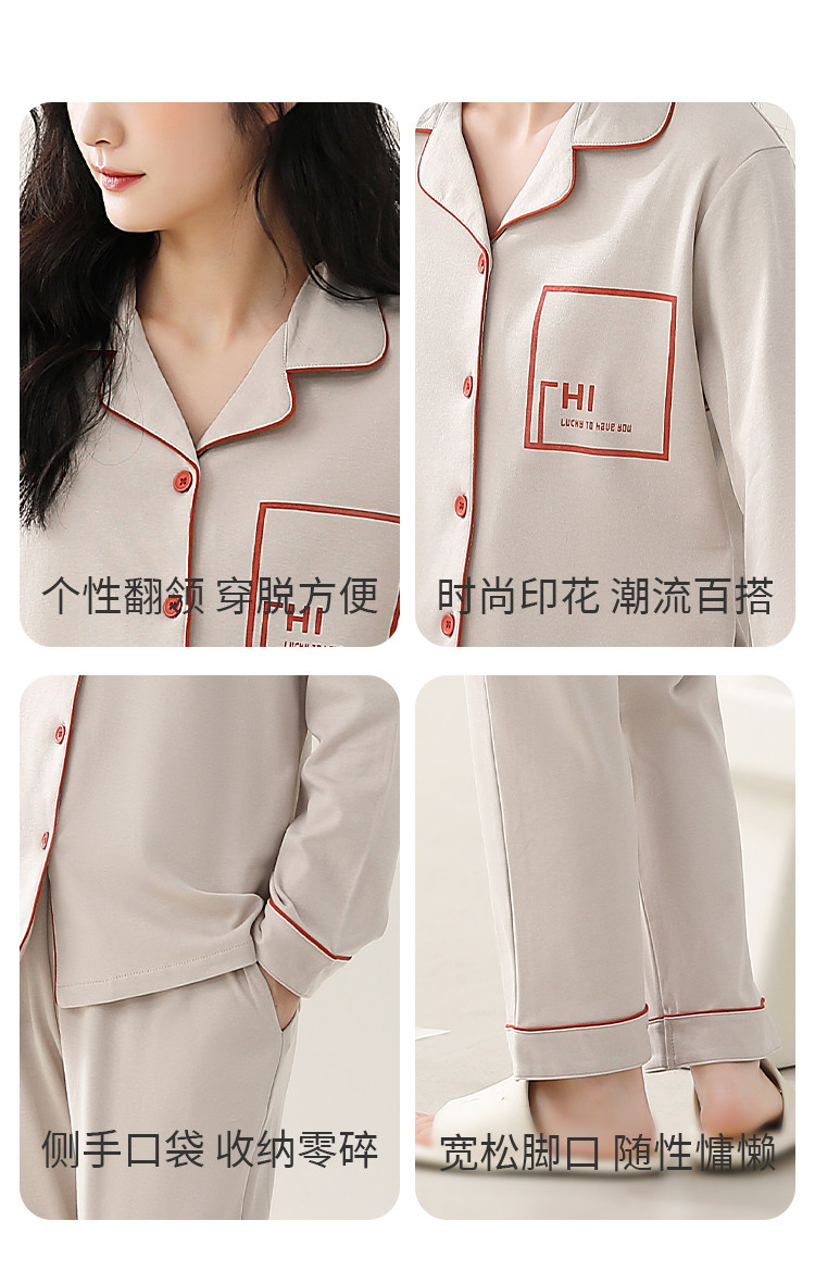 【100%棉】纯棉女士家居服睡衣撞色休闲可外穿翻领长袖套装女 450699