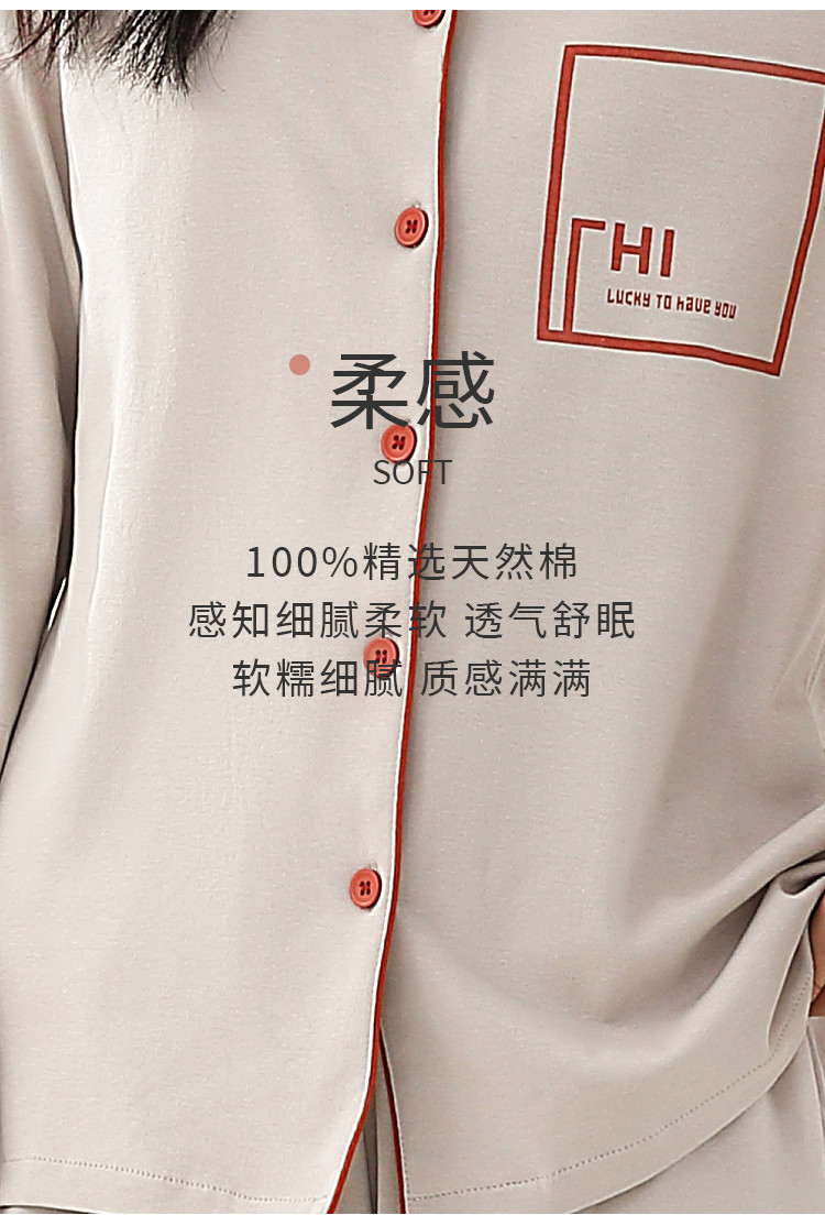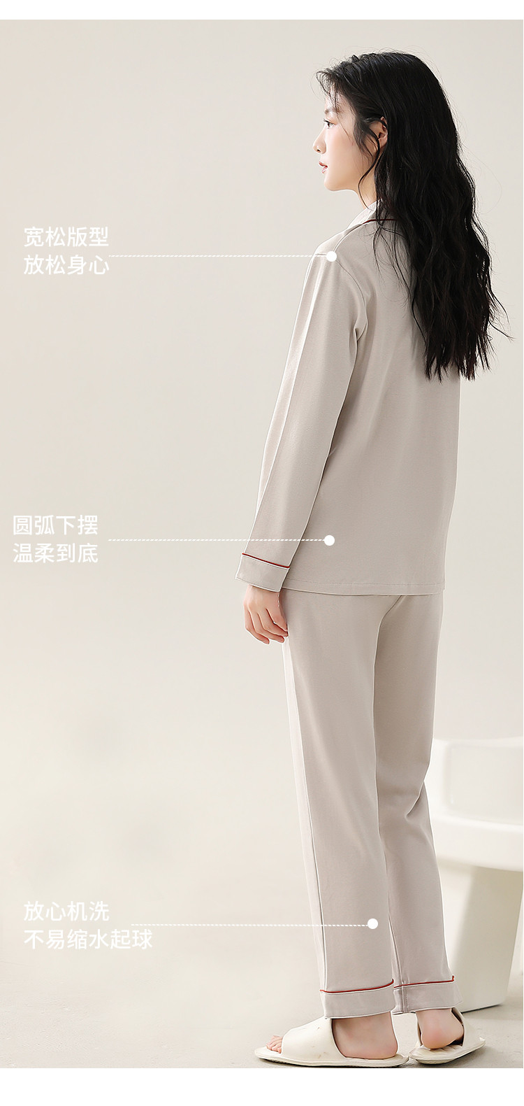 商品名称:【100%棉】纯棉女士家居服睡衣撞色休闲可外穿翻领长袖套装女 450699