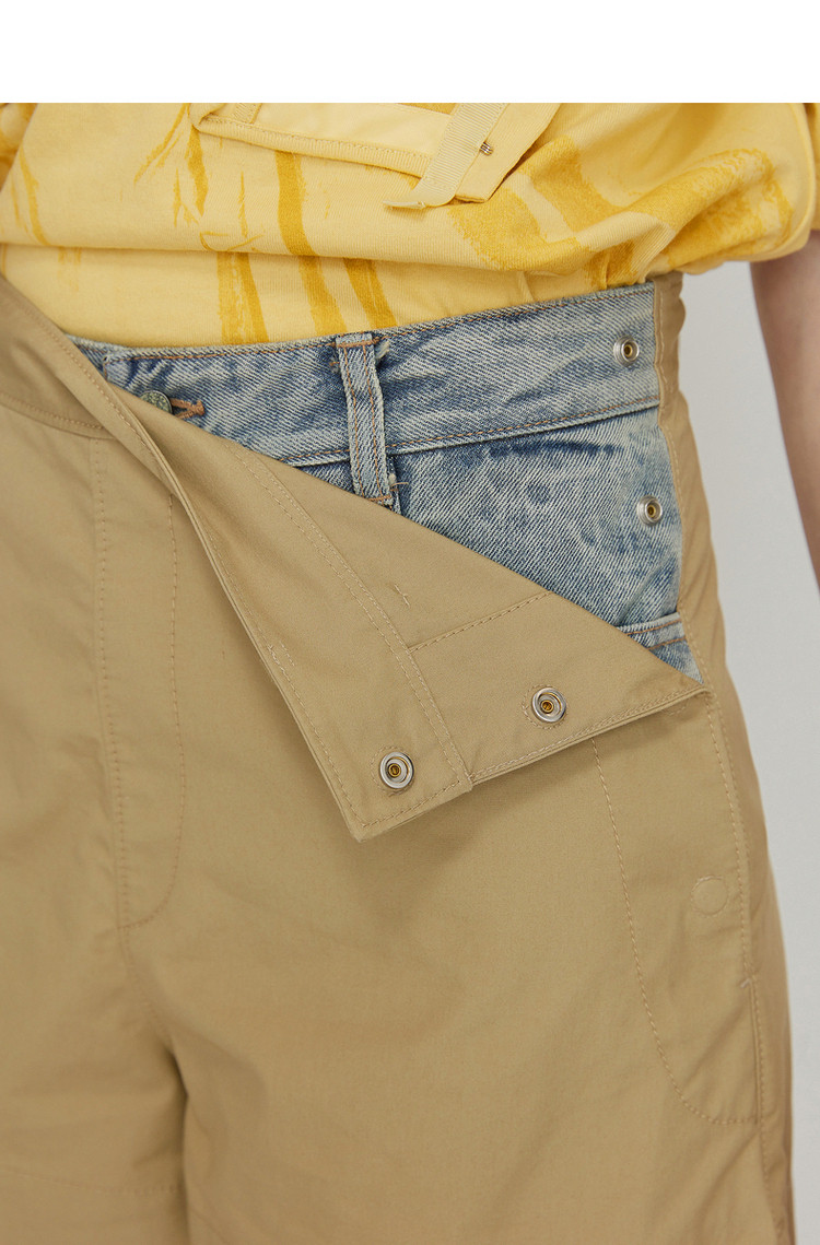 商品名称:夏短裤宽松纯棉直筒牛仔拼接休闲裤装女偏小 407307