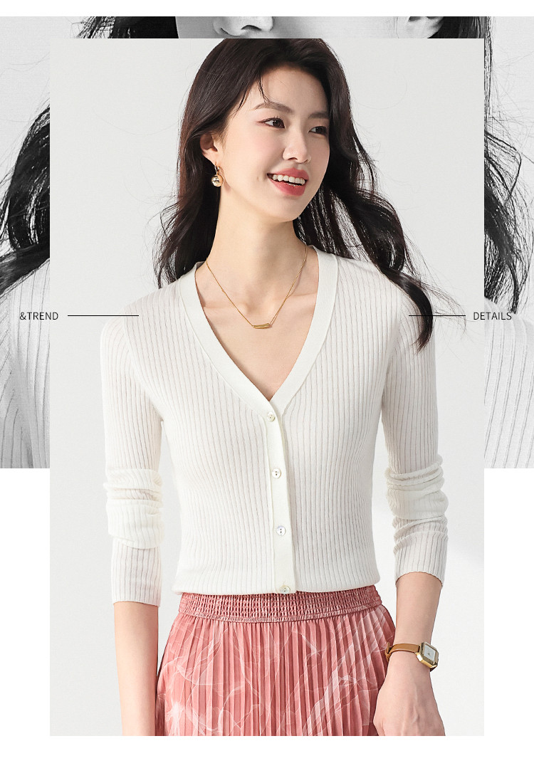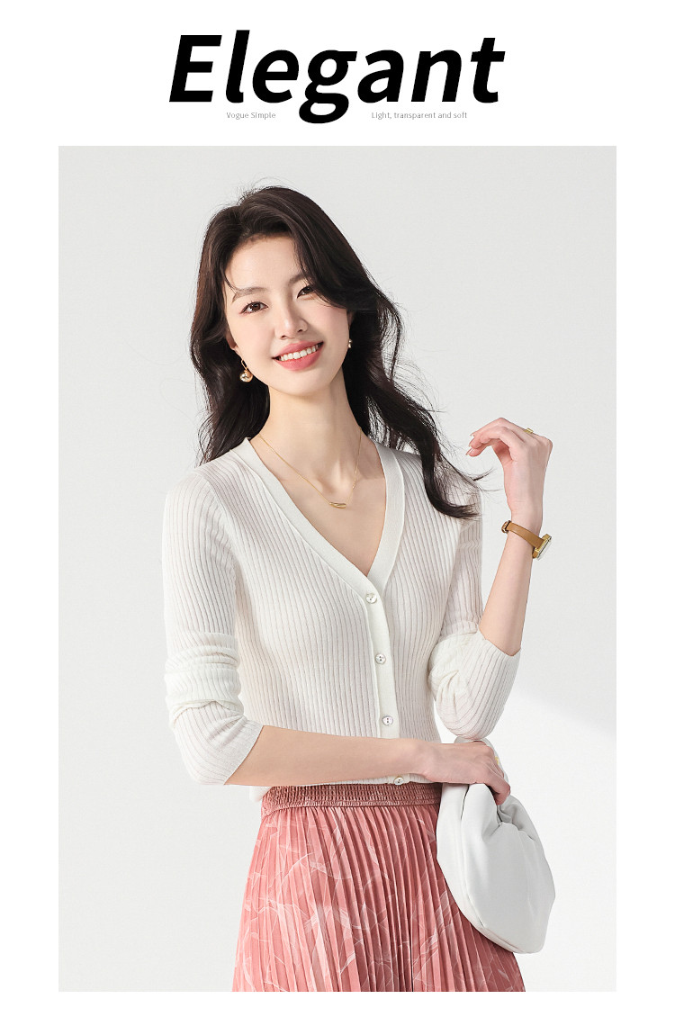 轻薄透气纯色V领含桑蚕丝针织打底开衫披肩毛衣外套夏款空调衫 514451