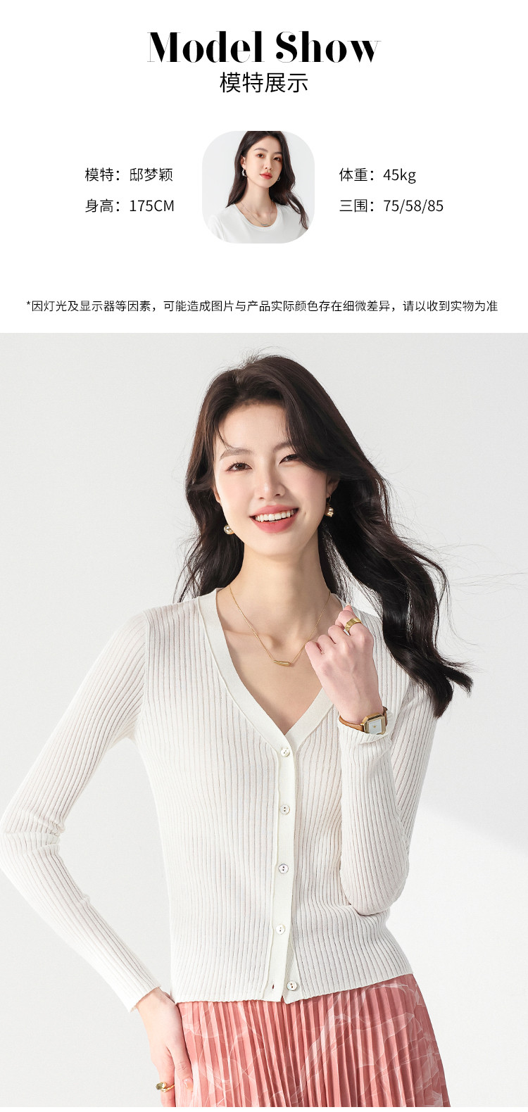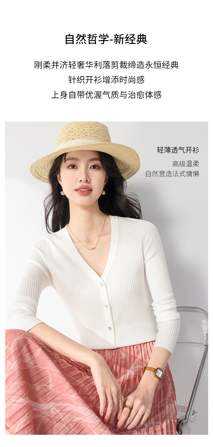 商品名称:轻薄透气纯色V领含桑蚕丝针织打底开衫披肩毛衣外套夏款空调衫 514451