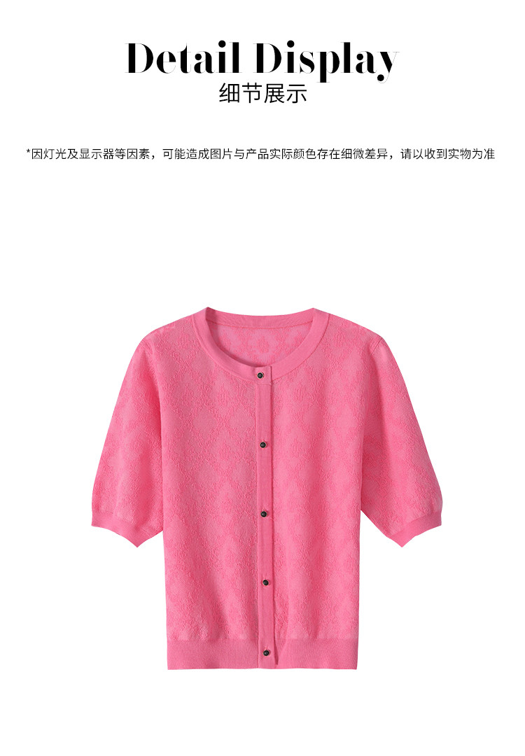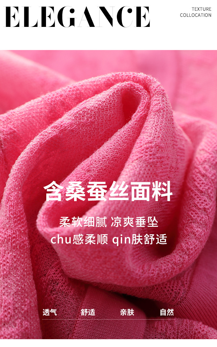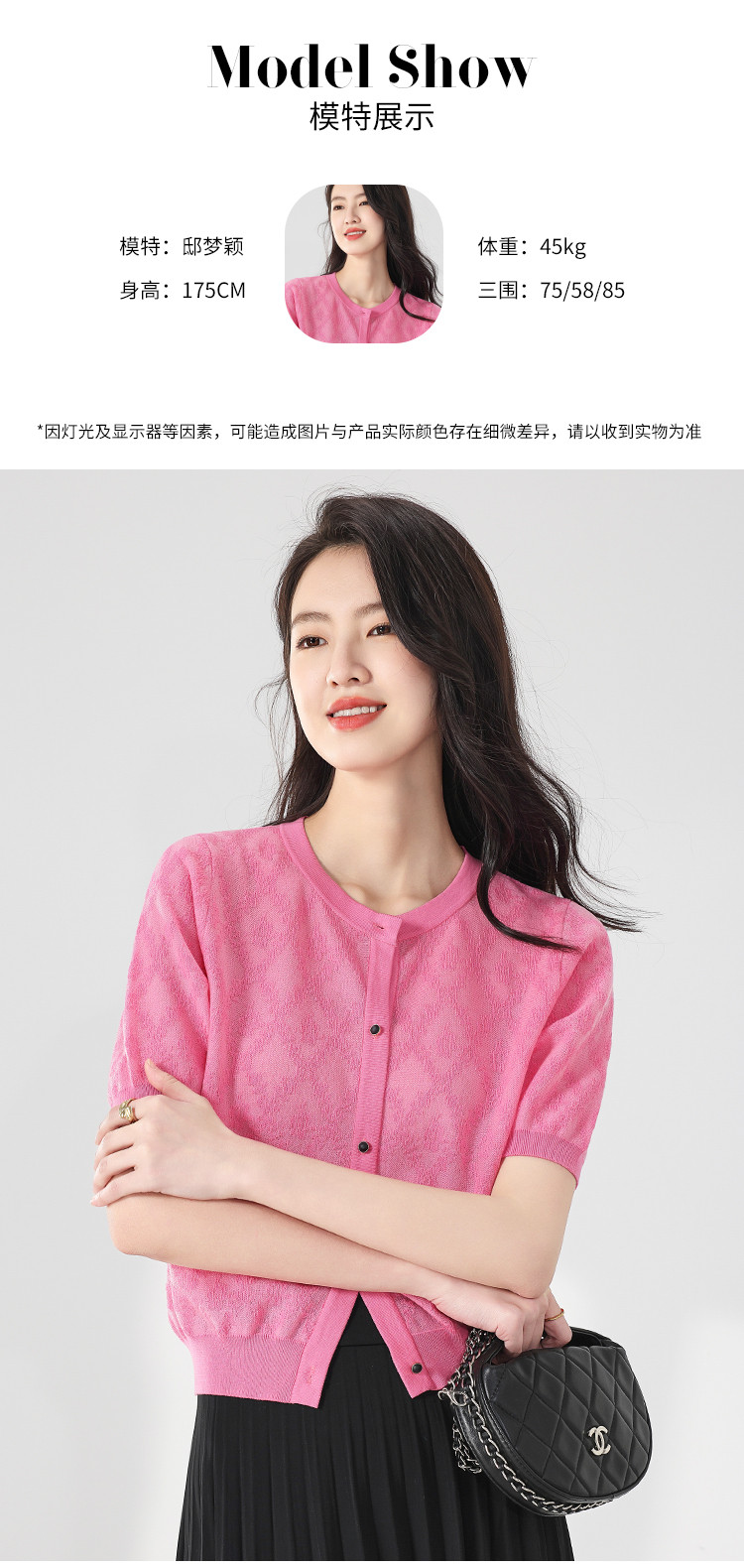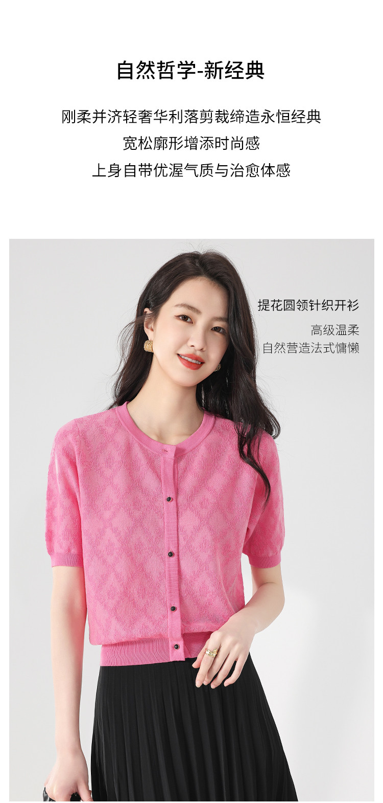 商品名称:轻薄纯色提花含桑蚕丝针织衫女开衫打底短袖T恤空调衫小外套夏 456019