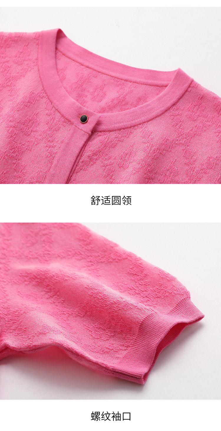 轻薄纯色提花含桑蚕丝针织衫女开衫打底短袖T恤空调衫小外套夏 456019
