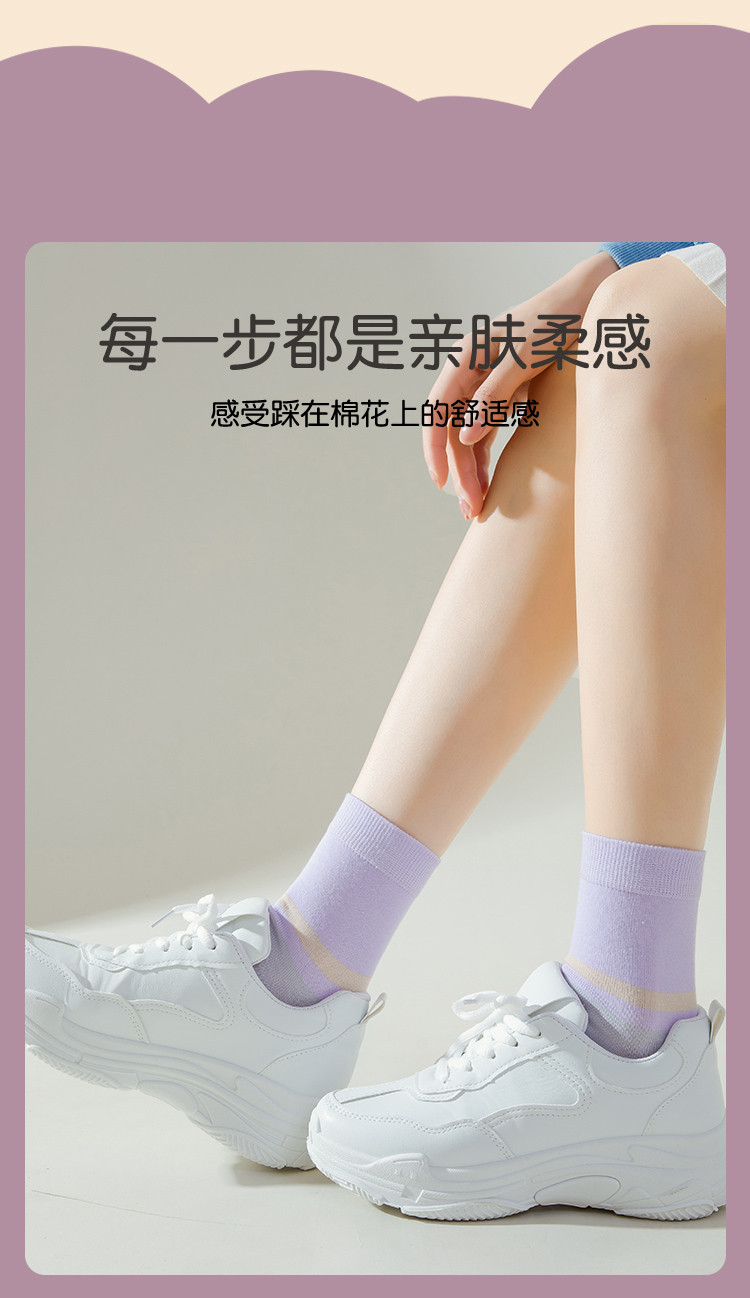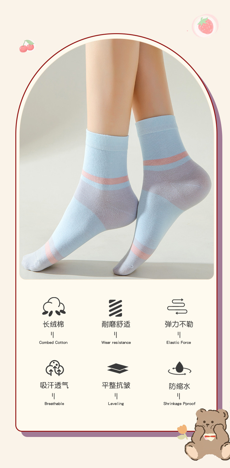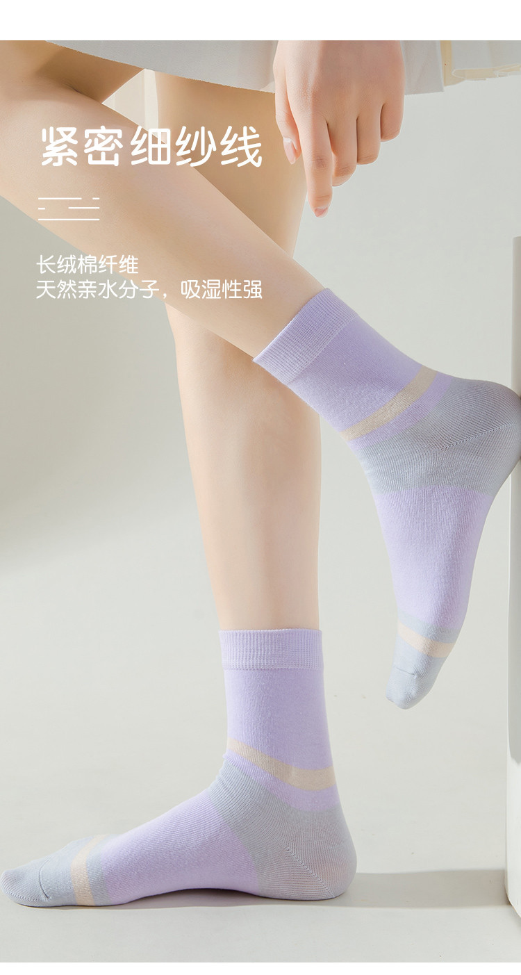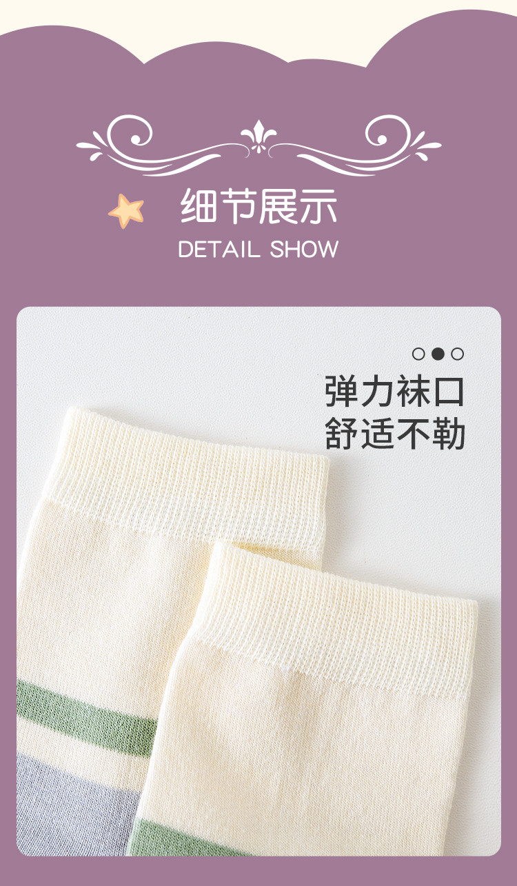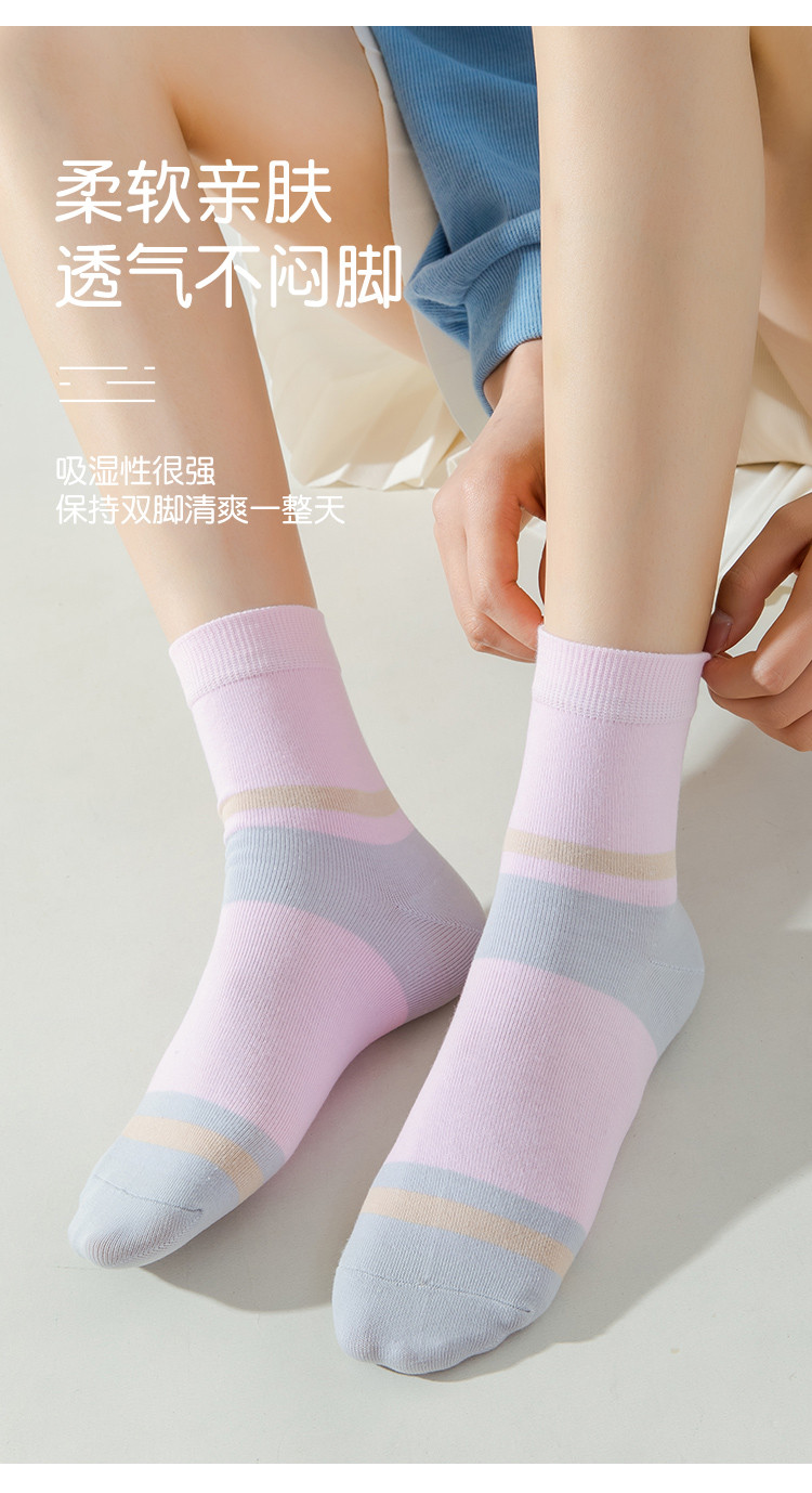 商品名称:【100%纯棉5A抑菌】夏季薄款5双装女士亲肤抑菌中筒袜子女 556939