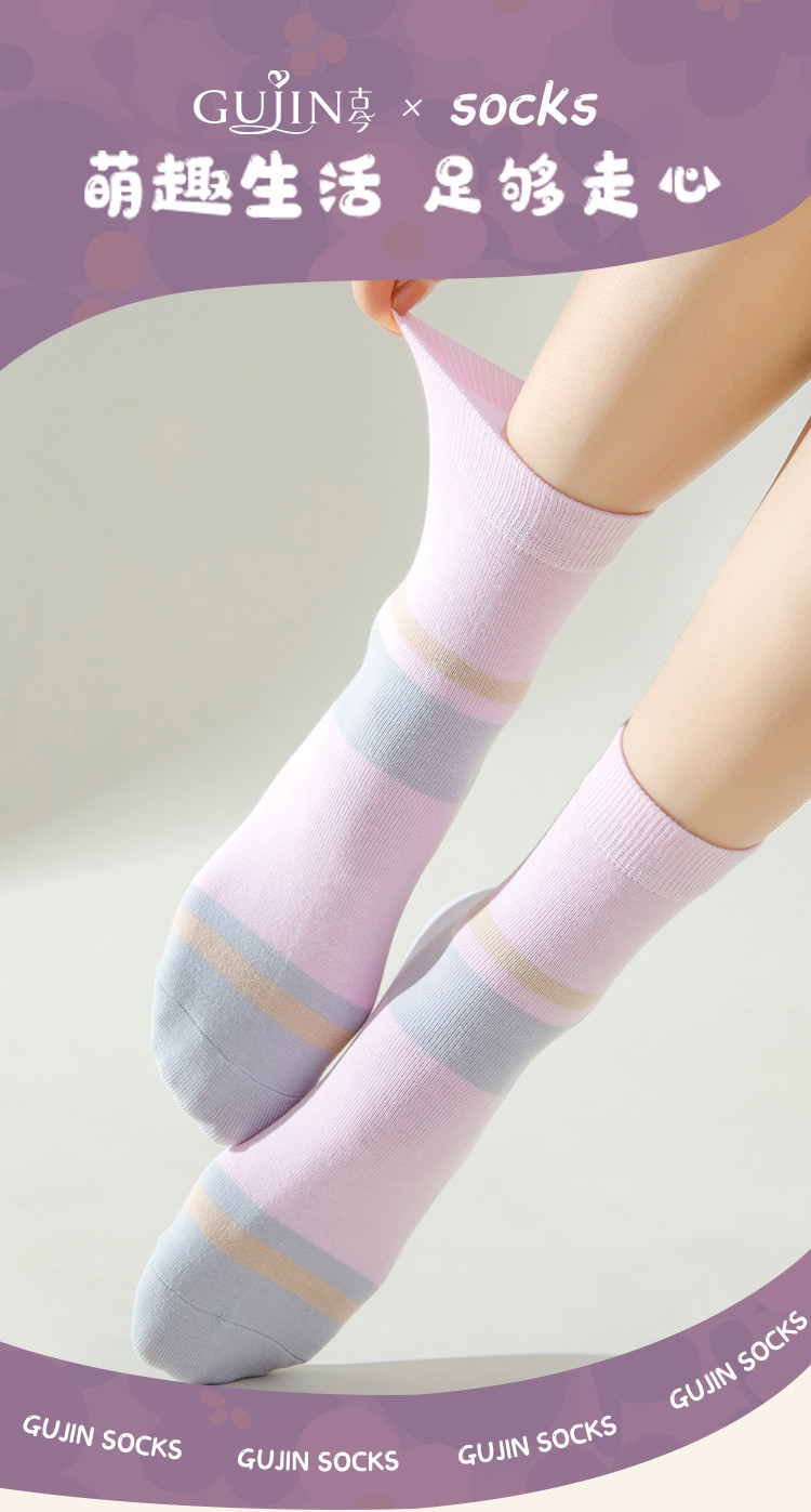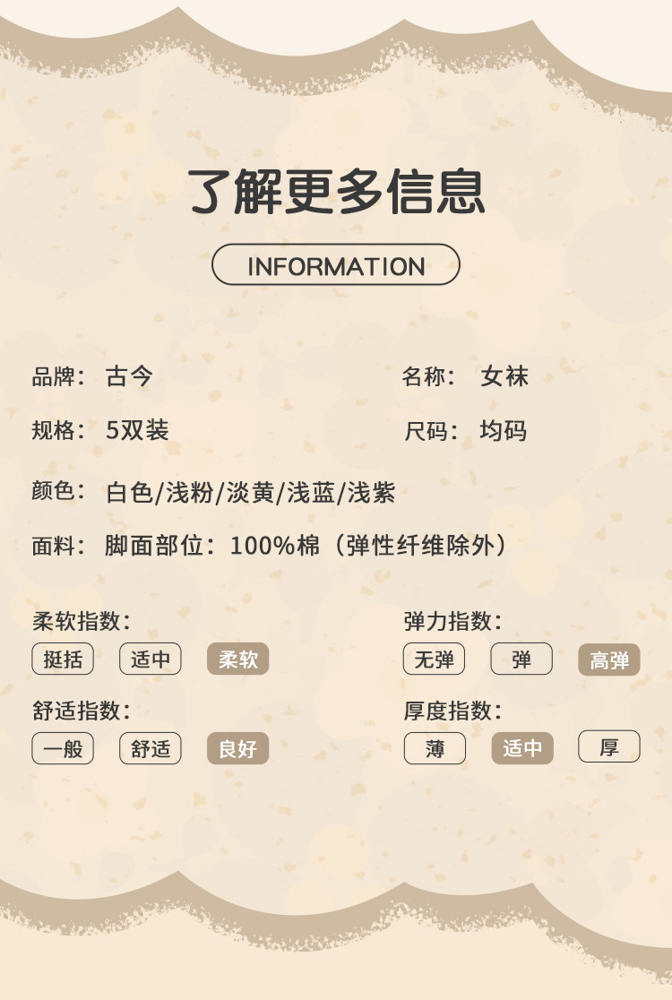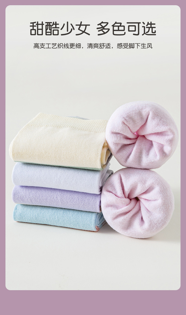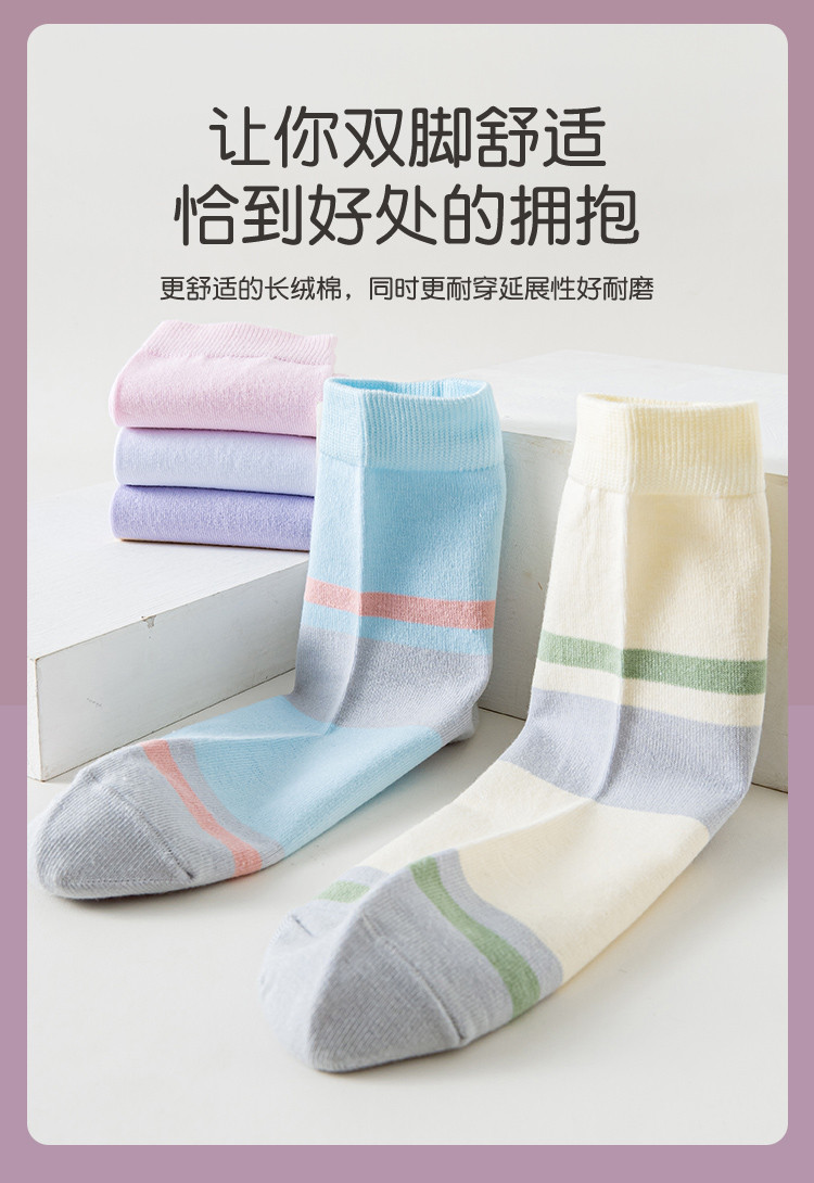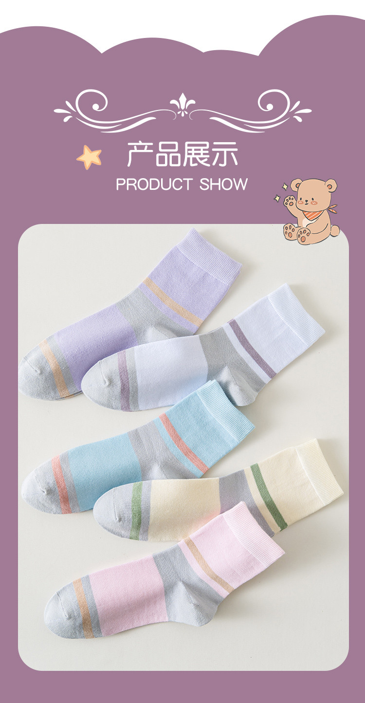 商品名称:【100%纯棉5A抑菌】夏季薄款5双装女士亲肤抑菌中筒袜子女 556939