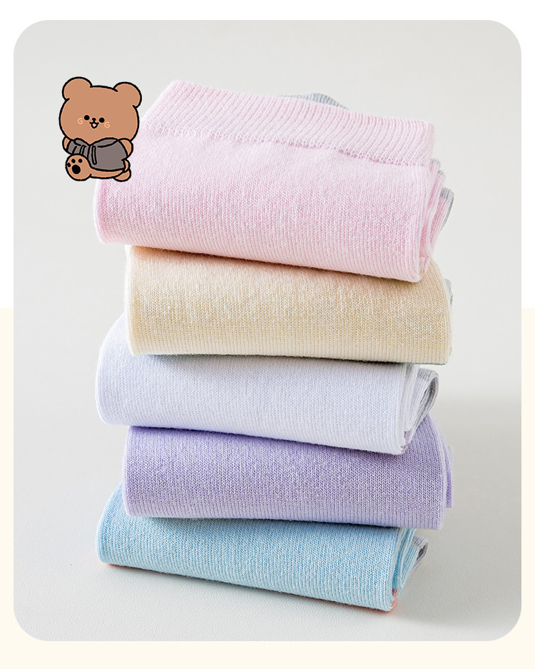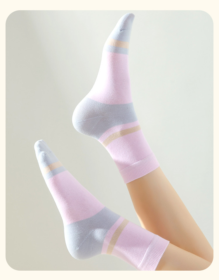 【100%纯棉5A抑菌】夏季薄款5双装女士亲肤抑菌中筒袜子女 556939