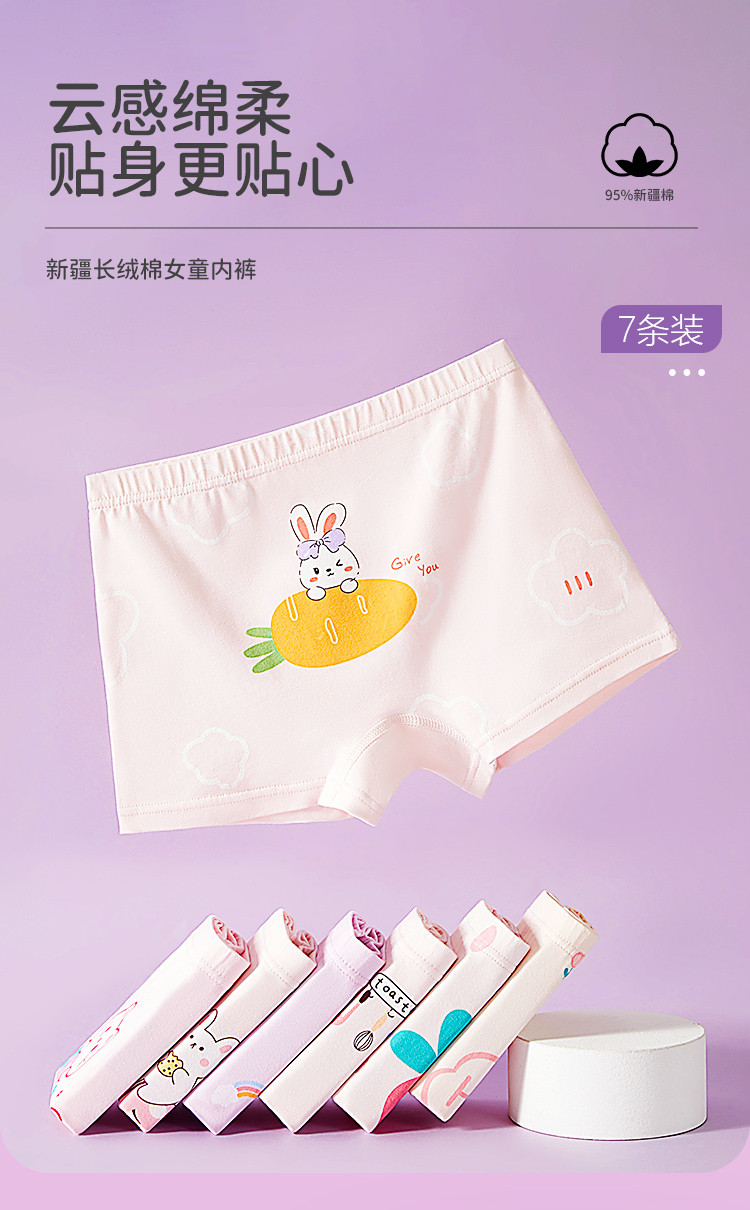 商品名称:7条【100%纯棉里裆抑菌】儿童内裤女中大女童平角内裤短裤 559755