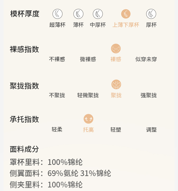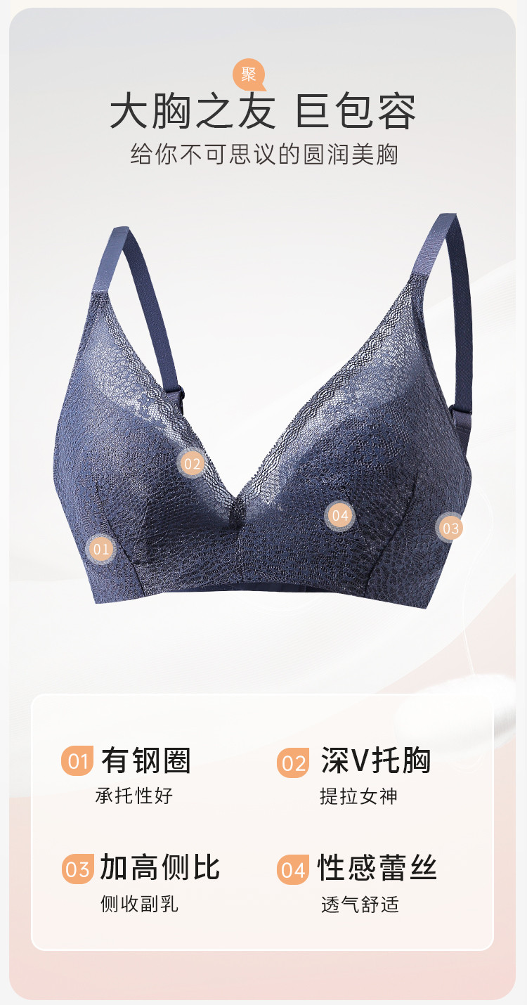 商品名称:古今内衣文胸女大胸显小舒适蕾丝文胸薄款收副乳防下垂文胸罩女 781451