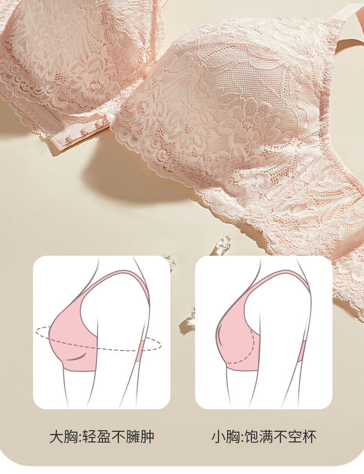 商品名称:【大胸包容】内衣聚拢不空杯侧收防下垂性感花瓣蕾丝美背文胸罩女 311051
