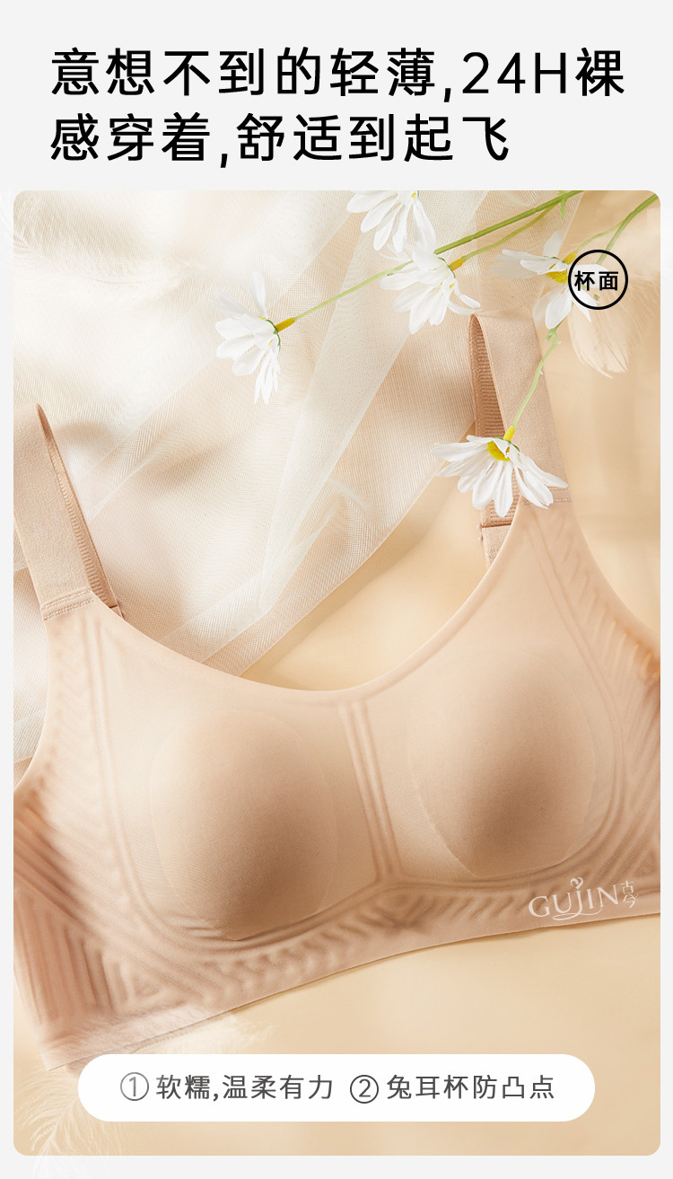 古今内衣文胸女大胸显小文胸薄款无痕内衣女收副乳防下垂文胸罩女 064075