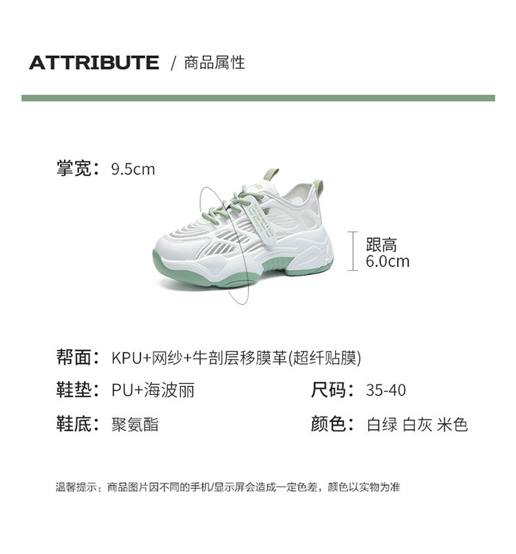 商品名称:【网面透气】通勤厚底增高休闲鞋子女运动鞋夏小白鞋女老爹鞋女鞋 486336