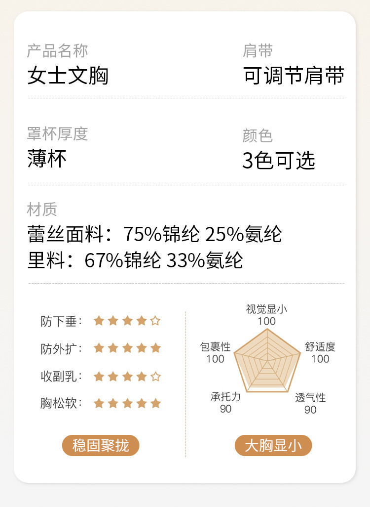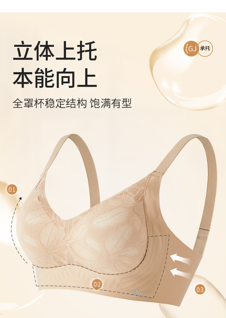 商品名称:【小胸聚拢】双重提拉内衣无钢圈防下垂收副乳蕾丝聚拢文胸罩女士 796171