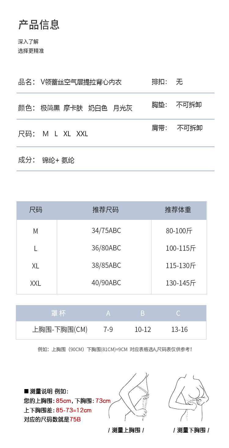 商品名称:【有氧空气层】反重力提拉聚拢侧收内衣女性感蕾丝背心式文胸罩 907102