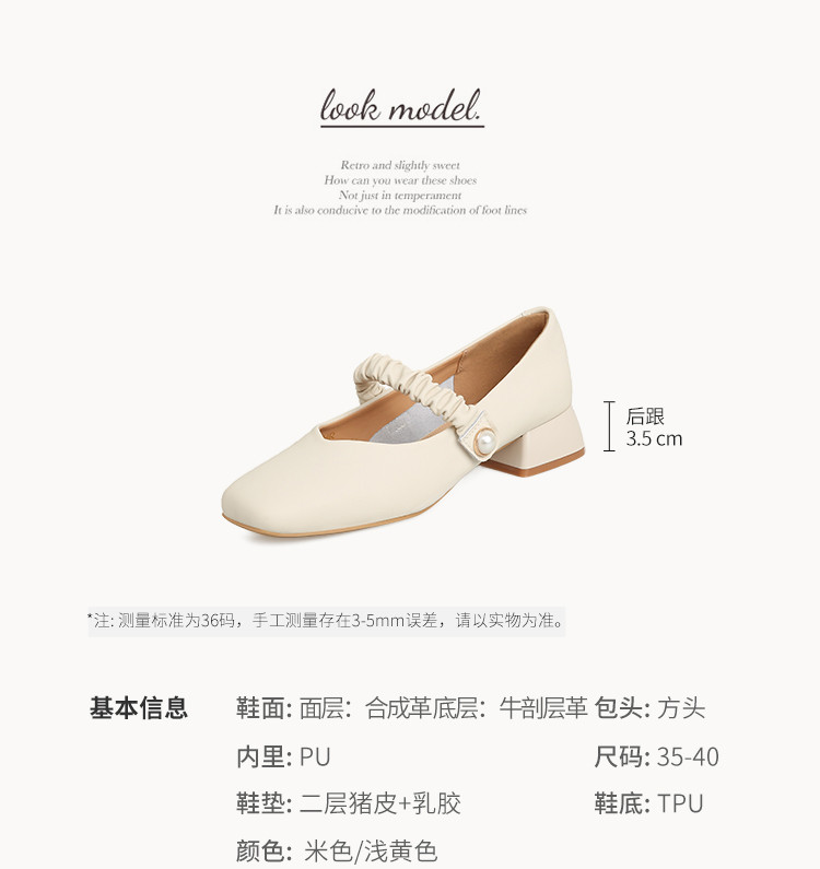 商品名称:【云朵褶皱】简约夏季通勤鞋女玛丽珍鞋女小皮鞋子单鞋女夏季女鞋 653952