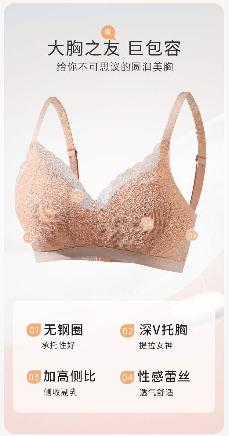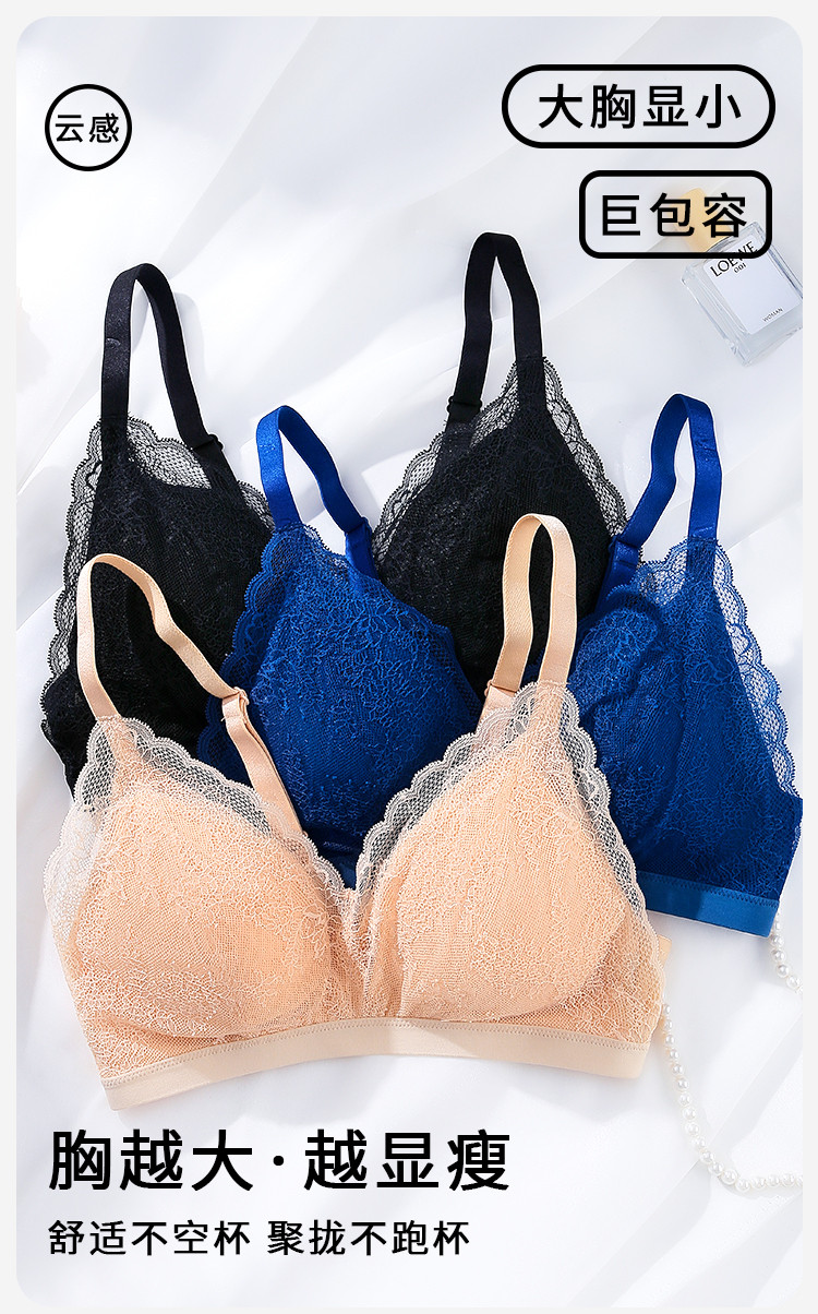 【小胸聚拢】双重提拉内衣无钢圈防下垂收副乳蕾丝聚拢文胸罩女士 796171
