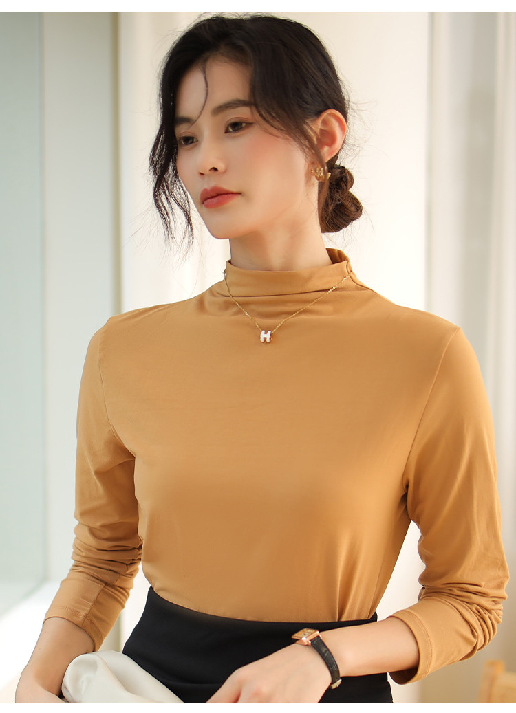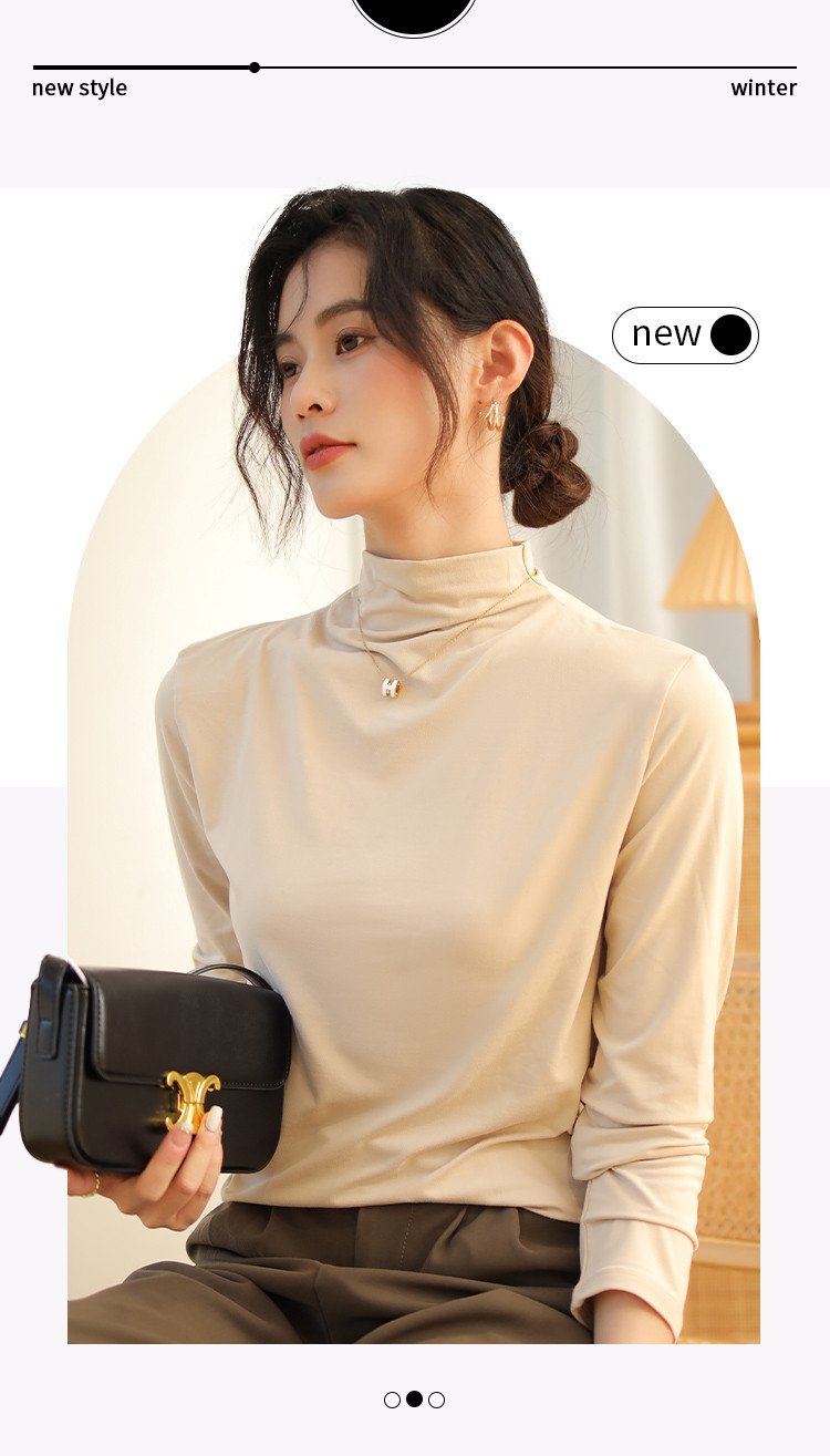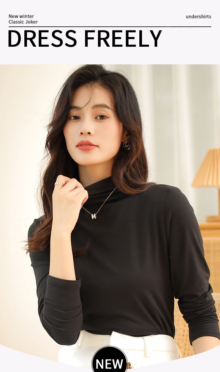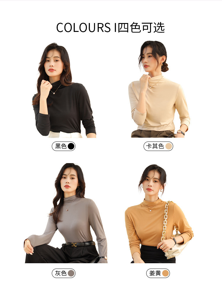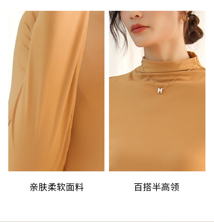 商品名称:【磨毛半高领】高弹亲肤女士打底衫保暖内搭上衣可外穿长袖小衫女 231051