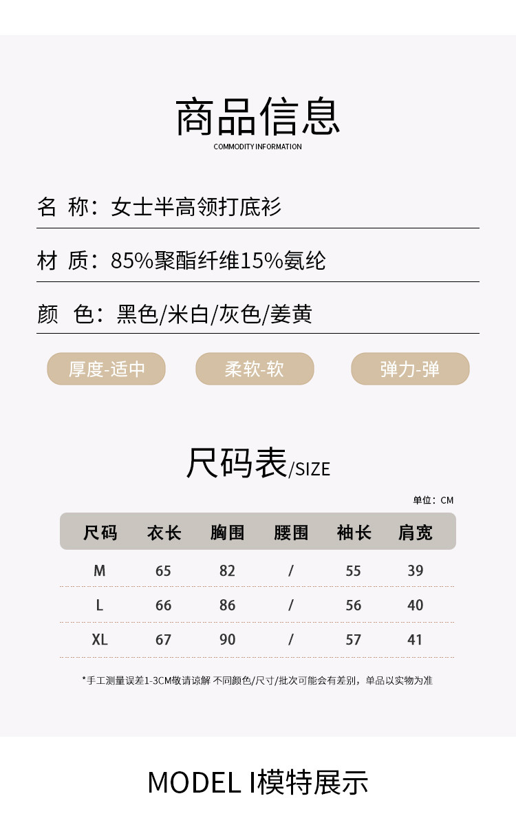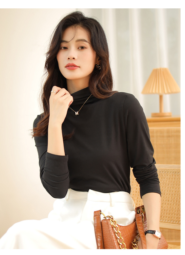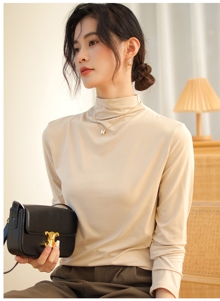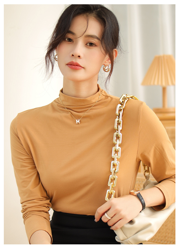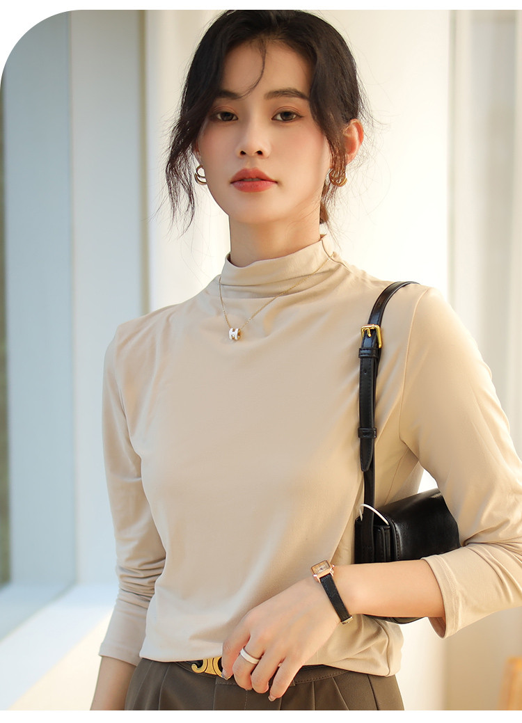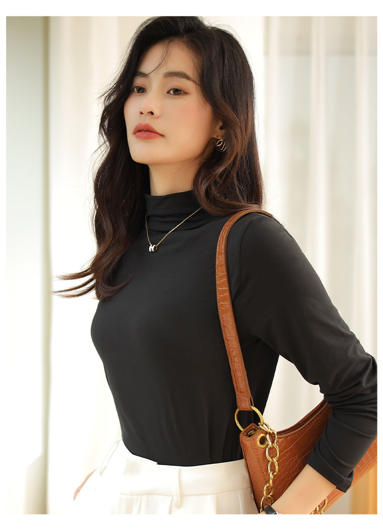 商品名称:【磨毛半高领】高弹亲肤女士打底衫保暖内搭上衣可外穿长袖小衫女 231051