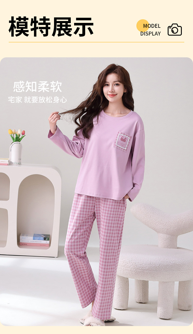 商品名称:【100%棉】可外穿女士长袖睡衣春秋季舒适纯棉家居服套装 304395