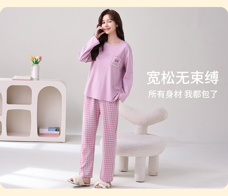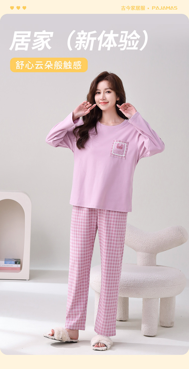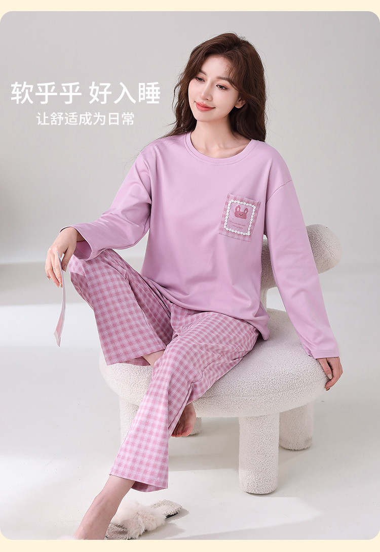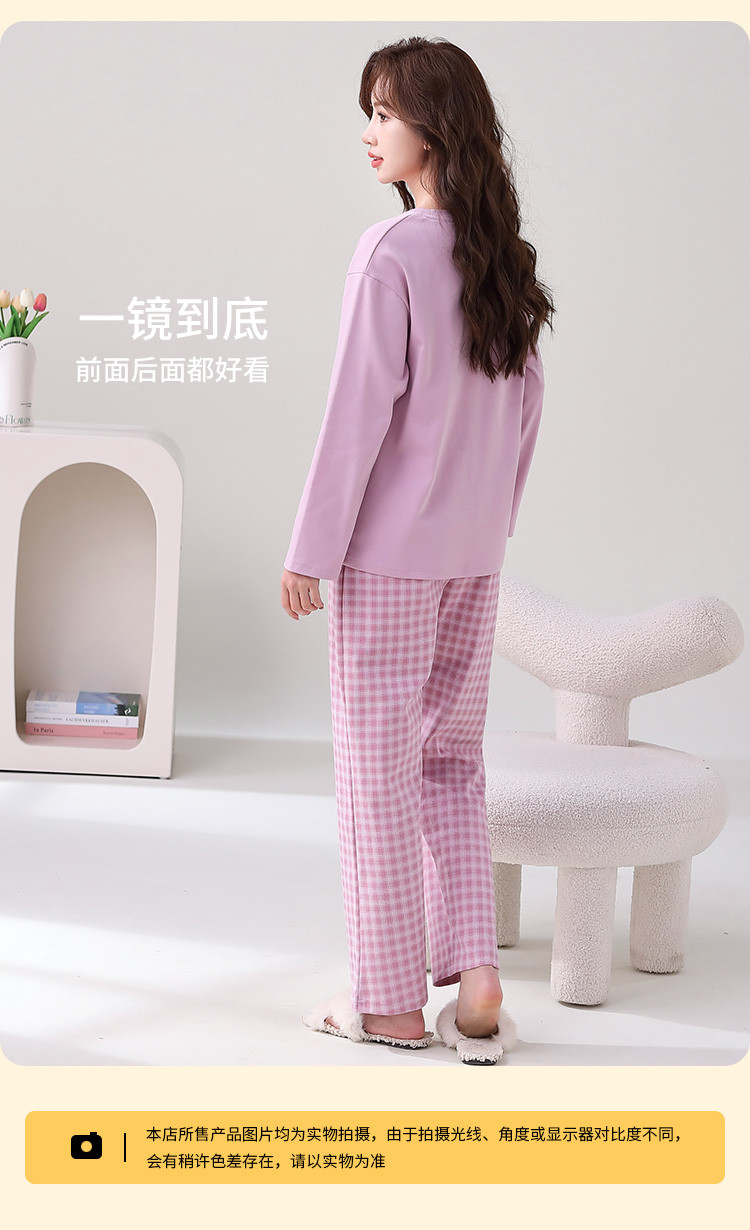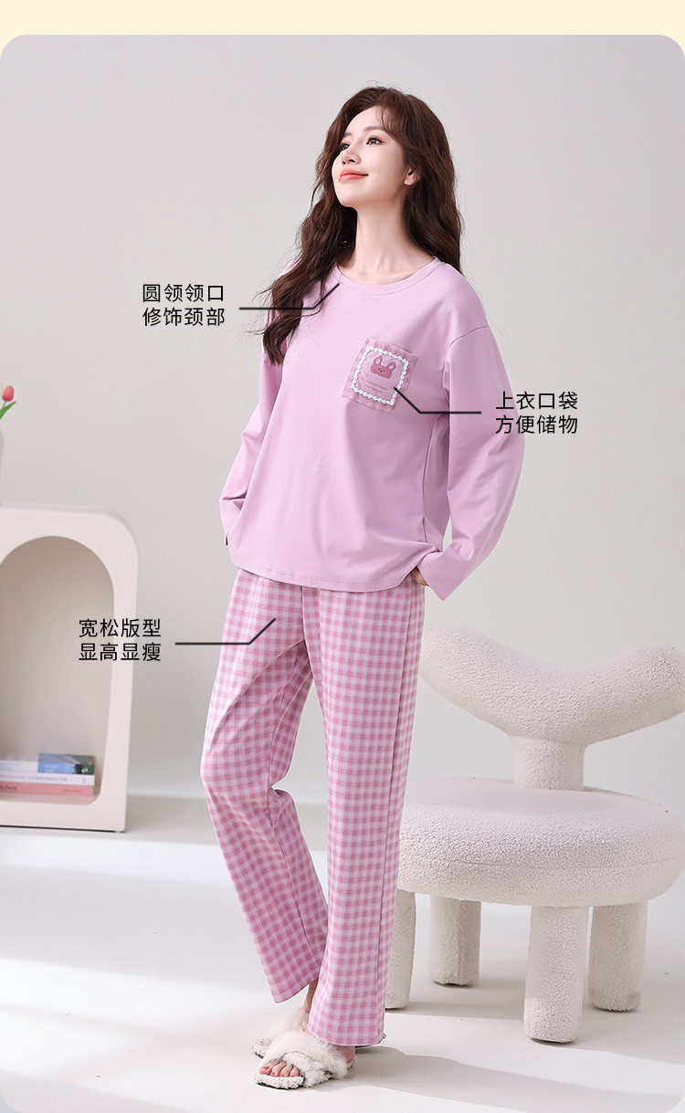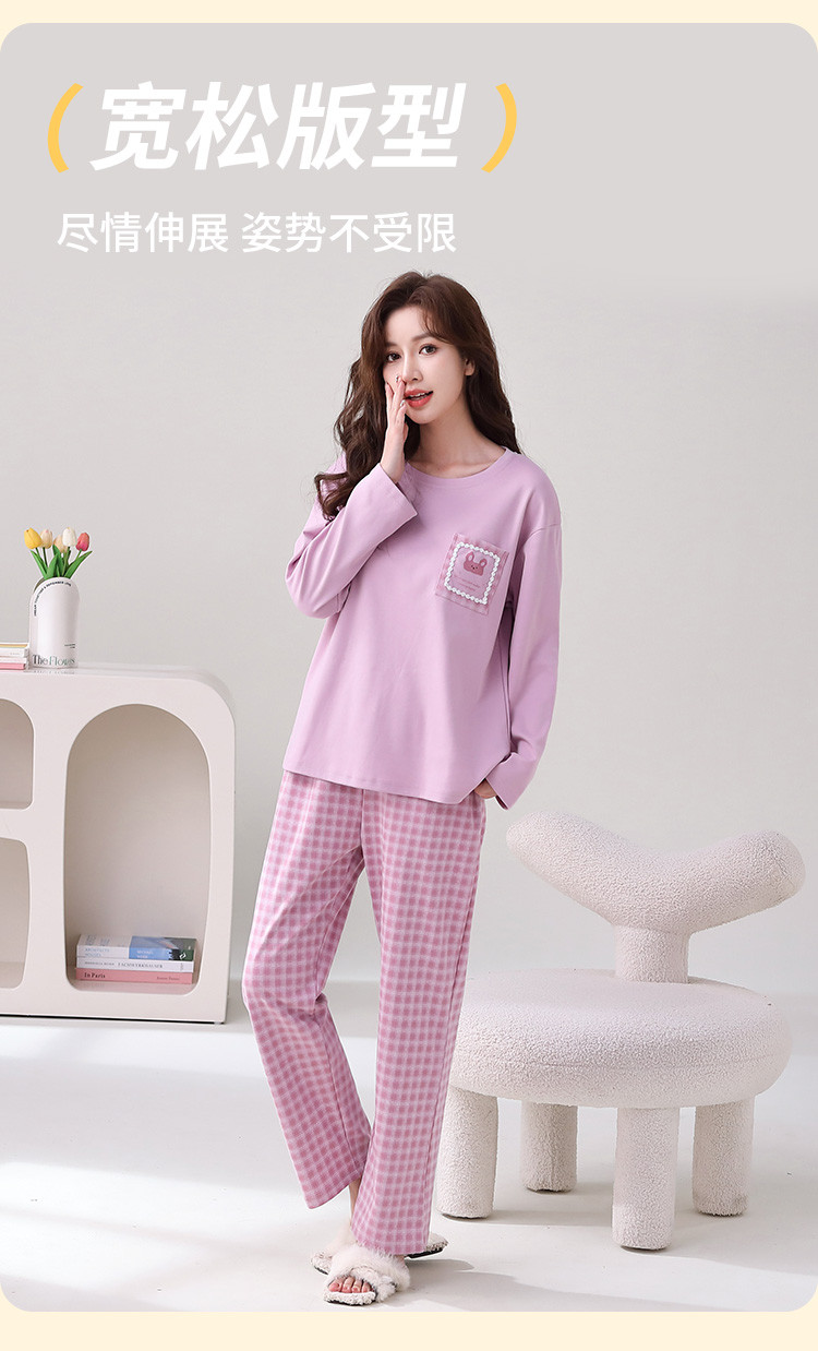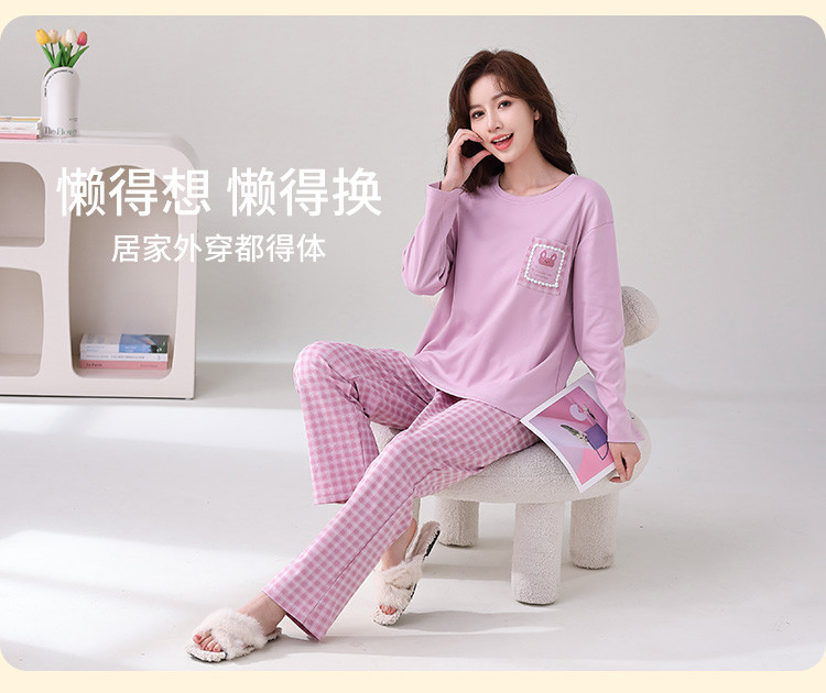 【100%棉】可外穿女士长袖睡衣春秋季舒适纯棉家居服套装 304395