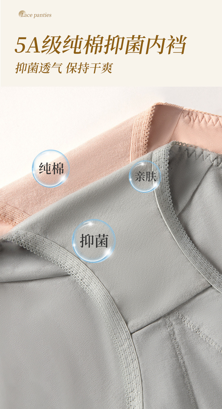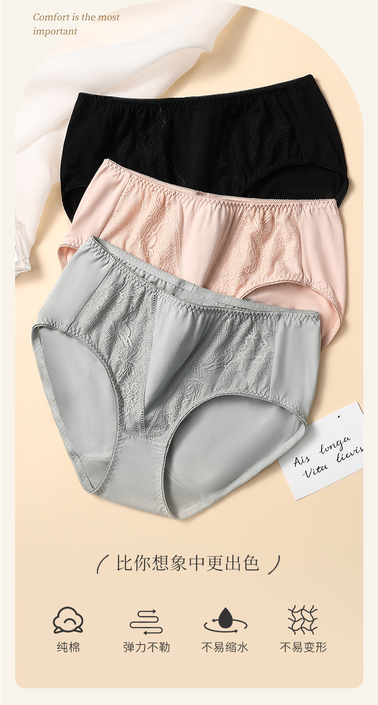 商品名称:【纯棉里裆】内裤女纯棉抗菌100棉底裆蕾丝性感三角女士内裤 720011