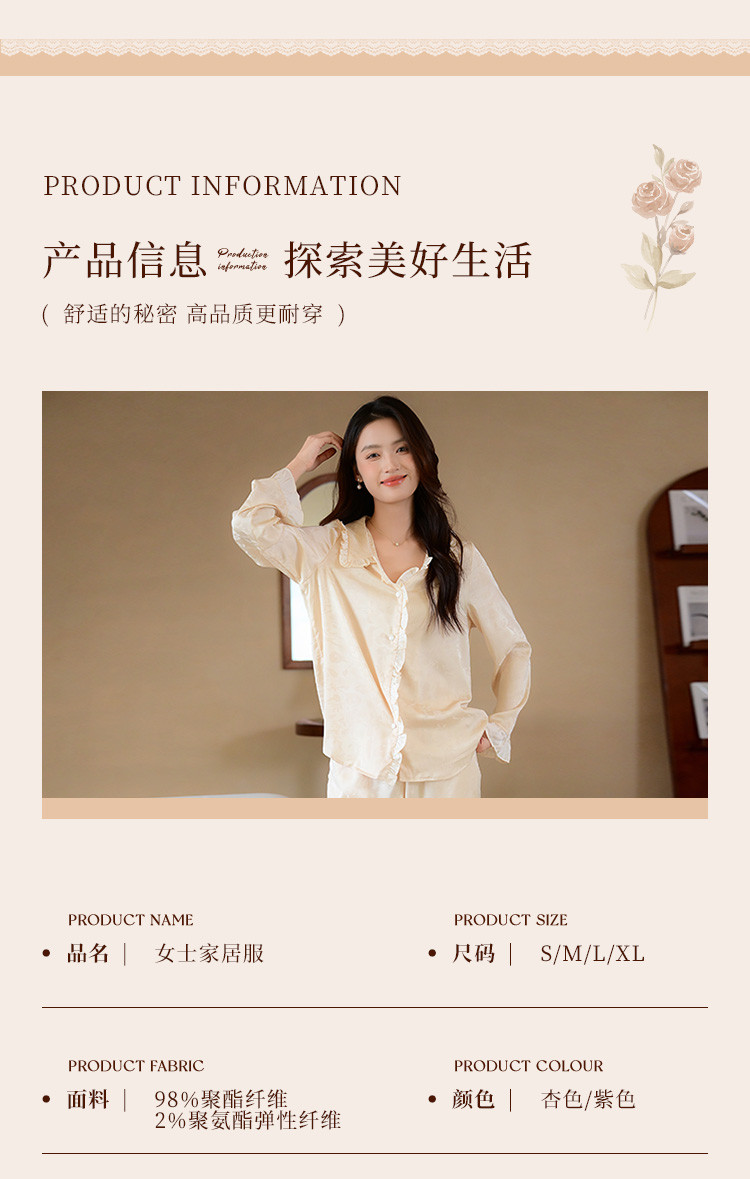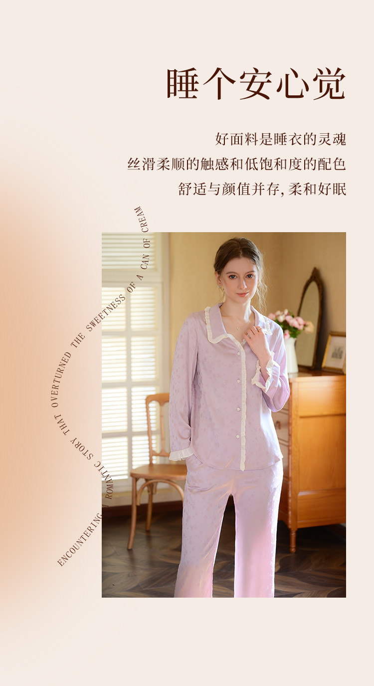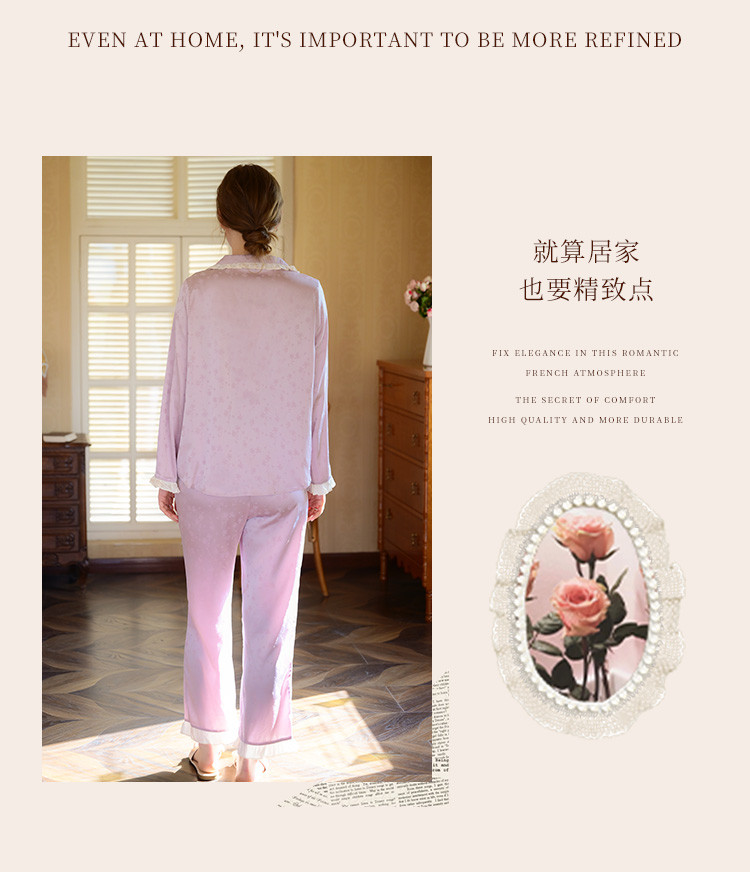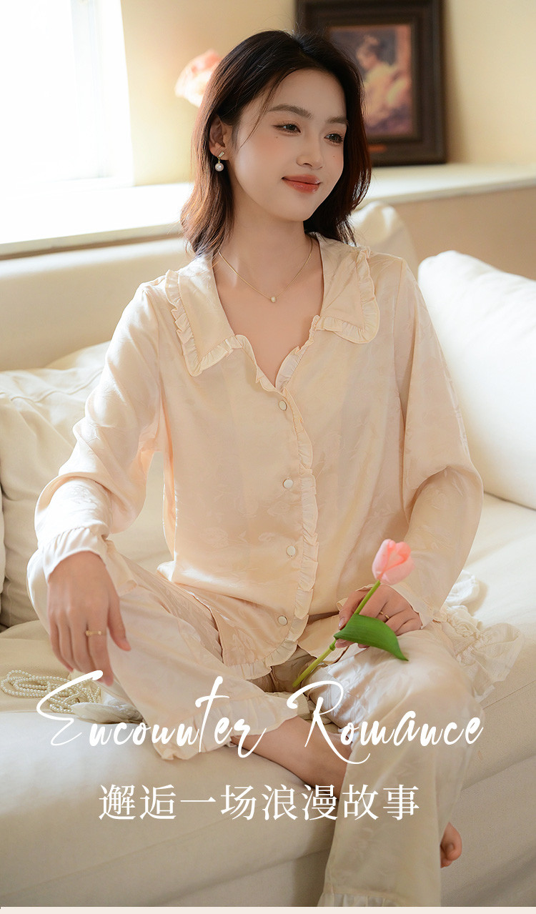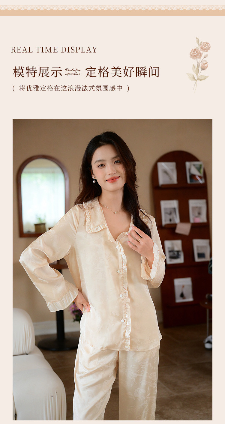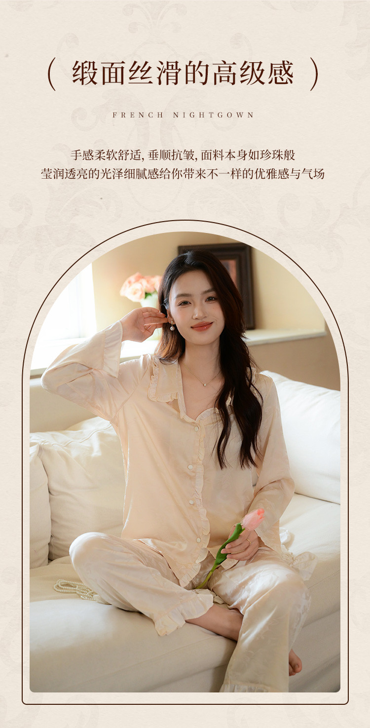 商品名称:【优雅花边缎面】春夏款长袖睡衣女可外穿高级感冰丝家居服套装 785163