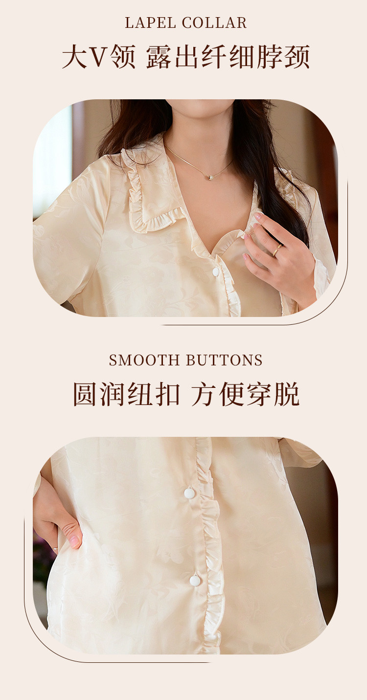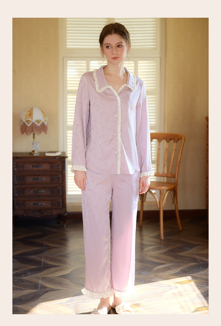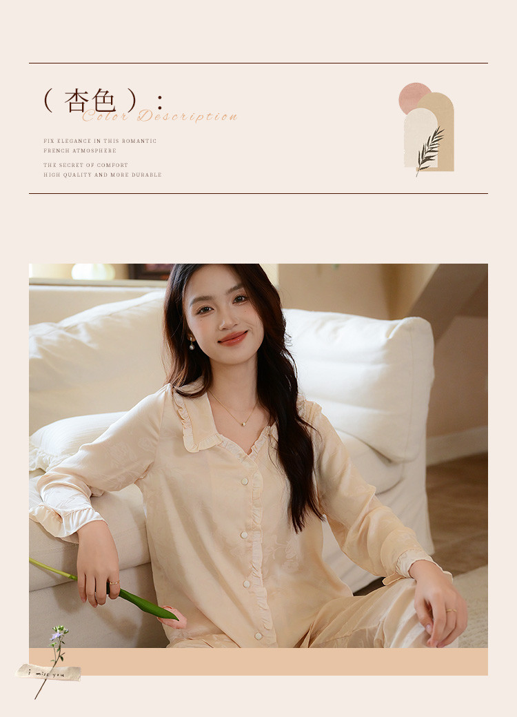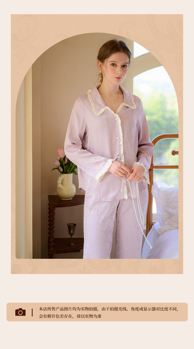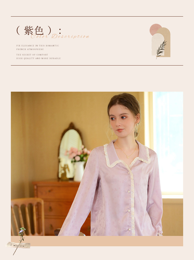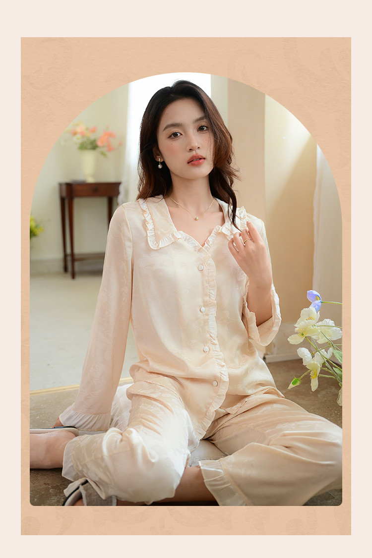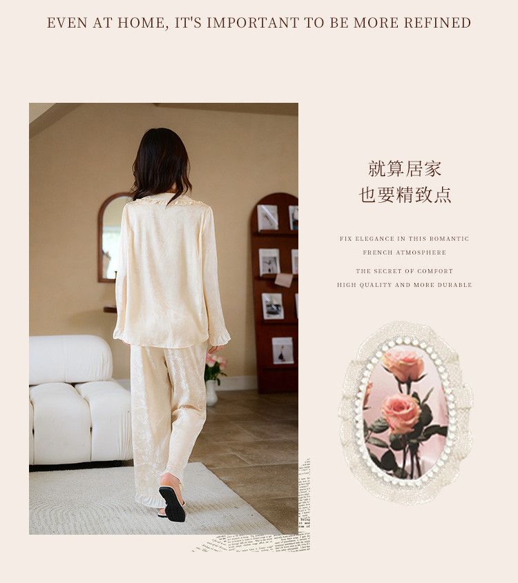 商品名称:【优雅花边缎面】春夏款长袖睡衣女可外穿高级感冰丝家居服套装 785163