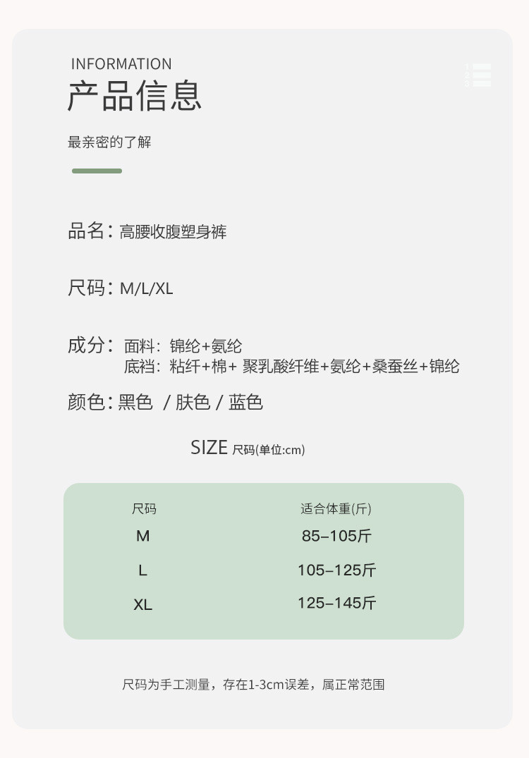 商品名称:【高腰收腹提臀】2条装微压收小肚子神器塑形束腰翘臀女士塑身裤 256990
