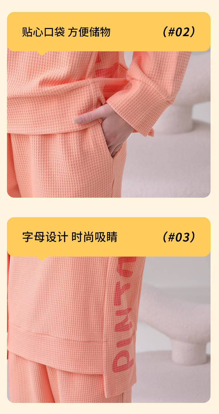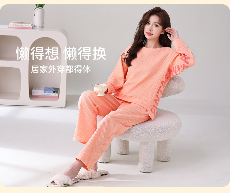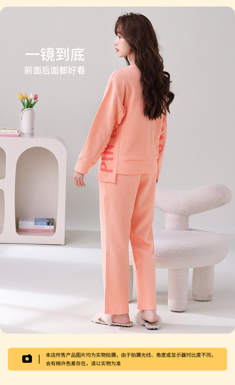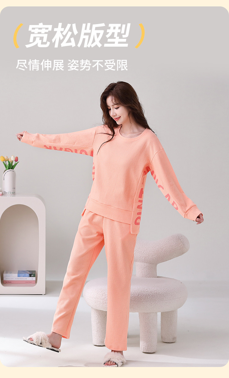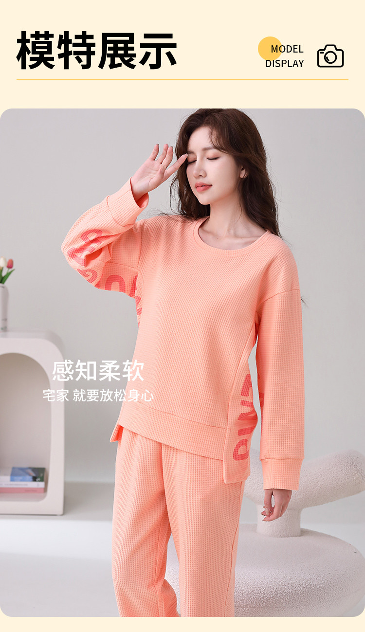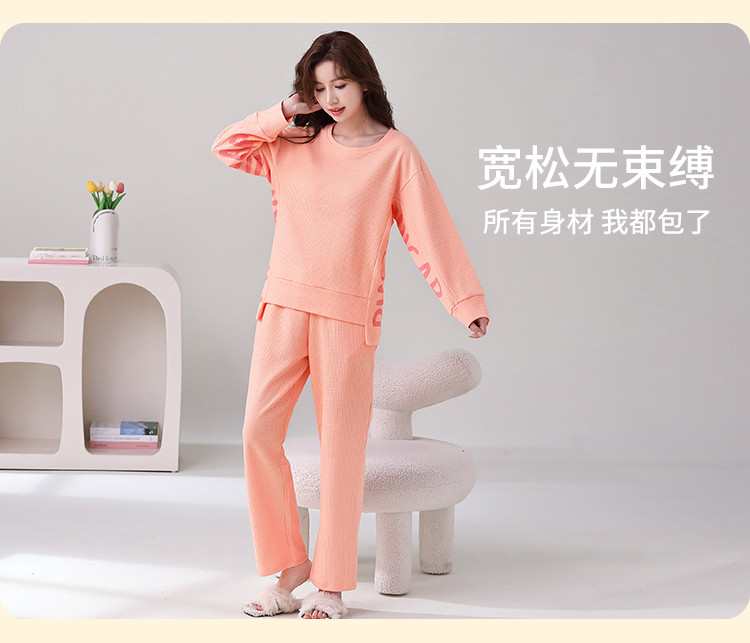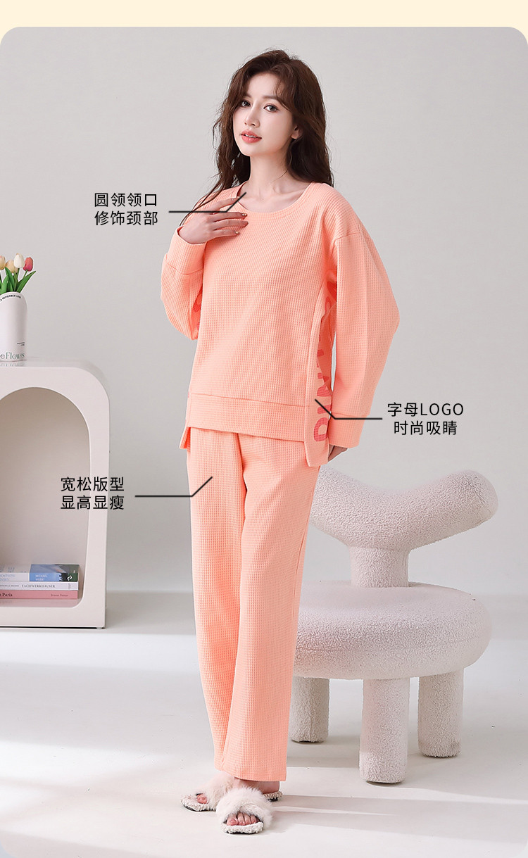 商品名称:【100%棉圆领华夫格】纯棉女睡衣春秋季可外穿长袖家居服套装 308491