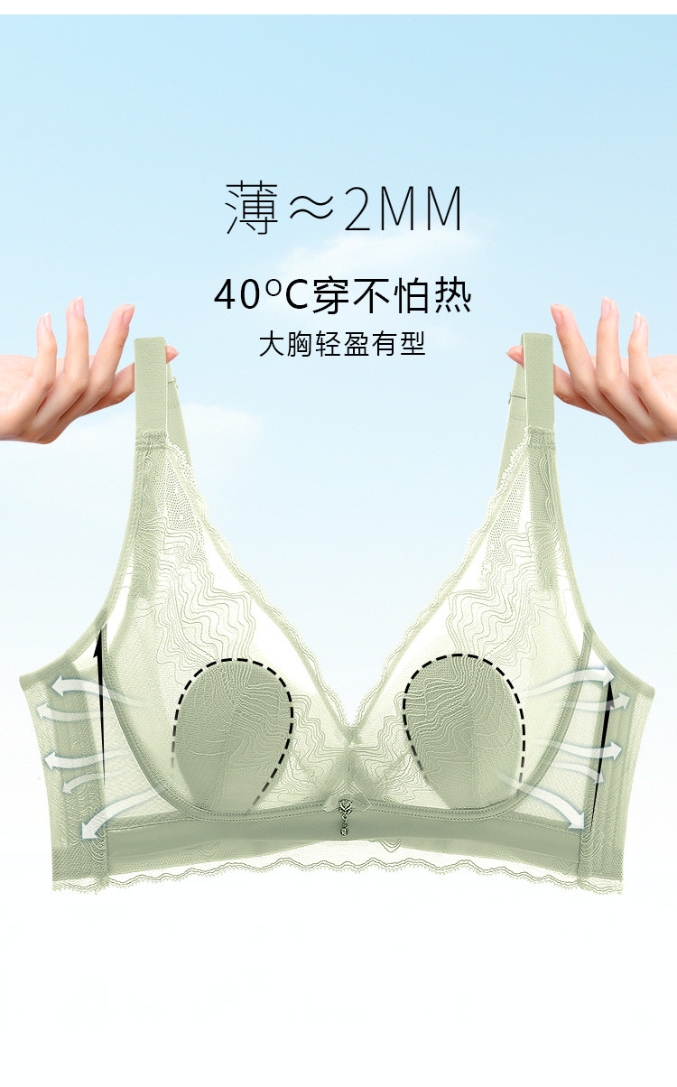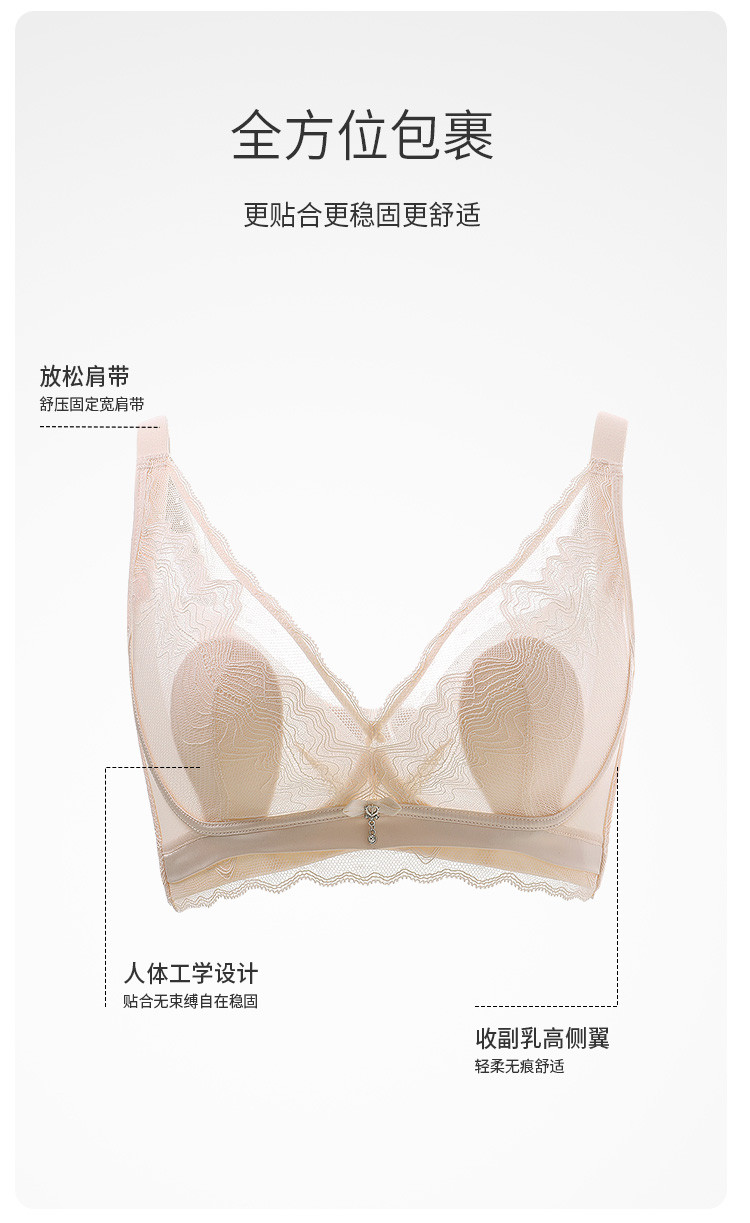 商品名称:【透气兔耳朵水晶杯】超薄内衣女大胸显小调整型侧收副乳文胸罩 446622