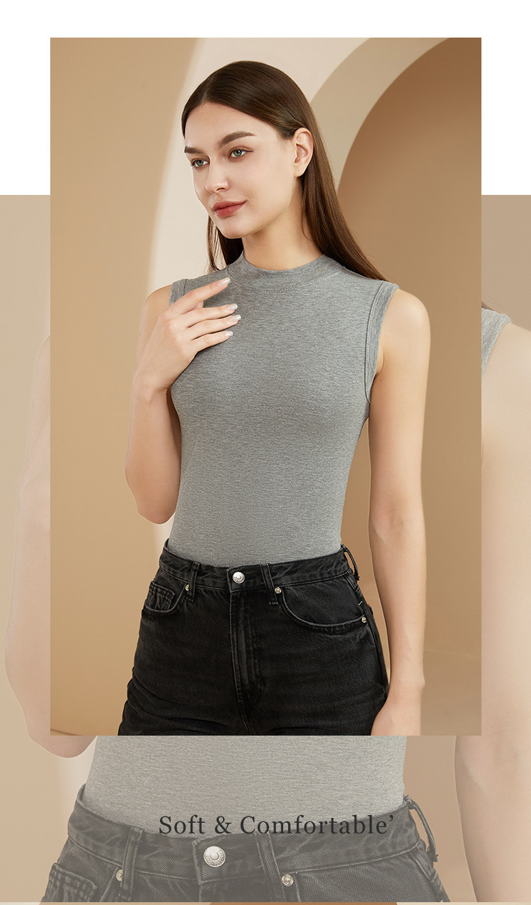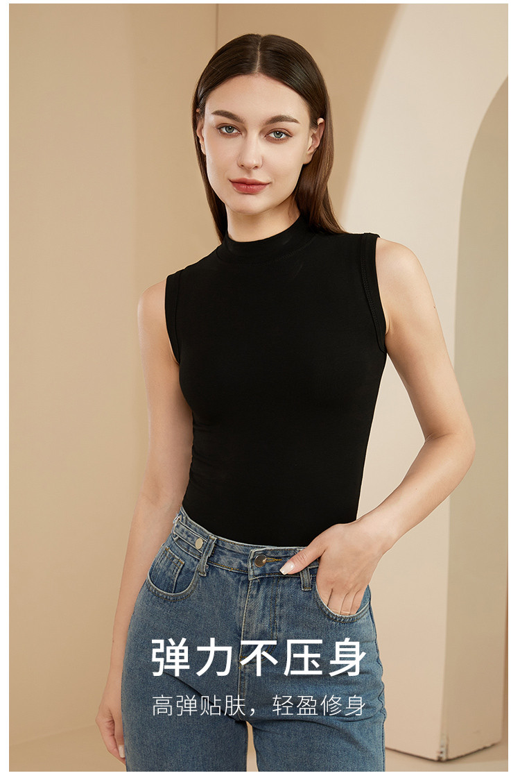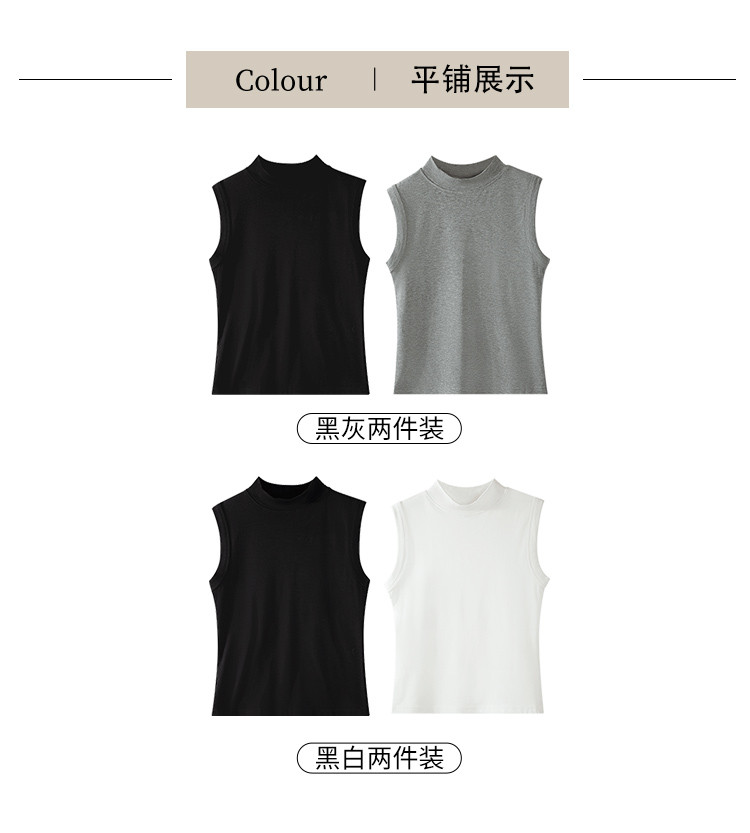 商品名称:基础经典舒适打底背心女半高领打底衫女春秋女内搭打底无袖2件装 039371
