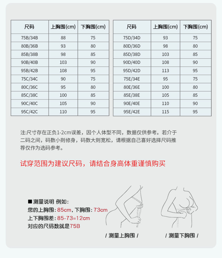 尺码 下胸围(cm) 上胸围(cm)