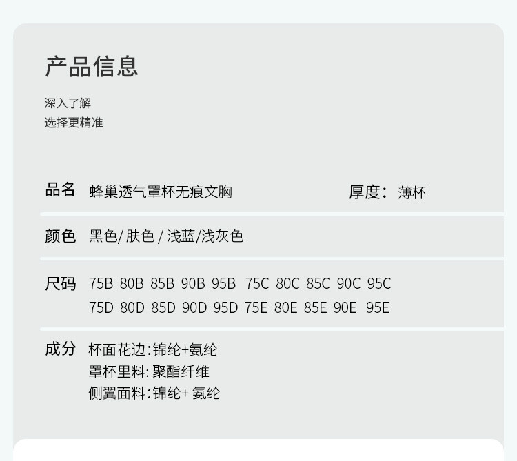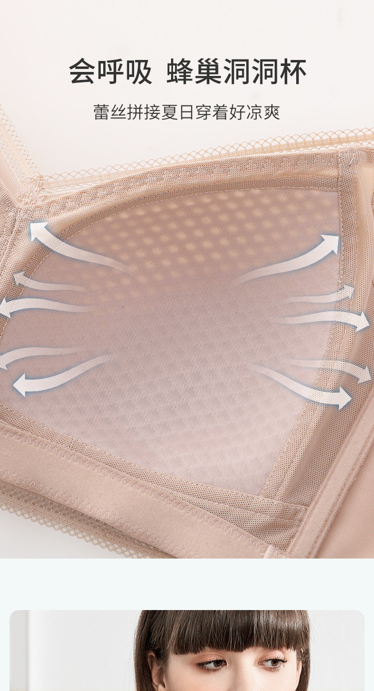 商品名称:【会呼吸的蜂巢杯】透气内衣女大胸显小聚拢防下垂无钢圈文胸罩 042590