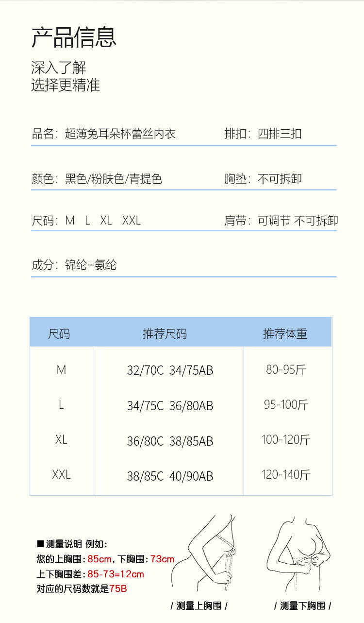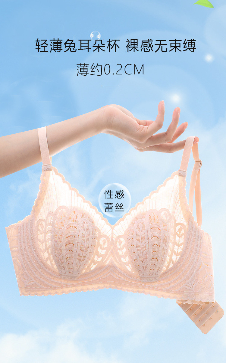 商品名称:【孔雀翎蕾丝 小胸专属】内衣女性感超薄兔耳朵透气无钢圈文胸罩 101342