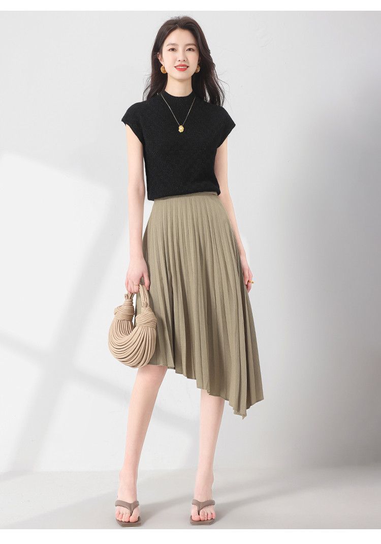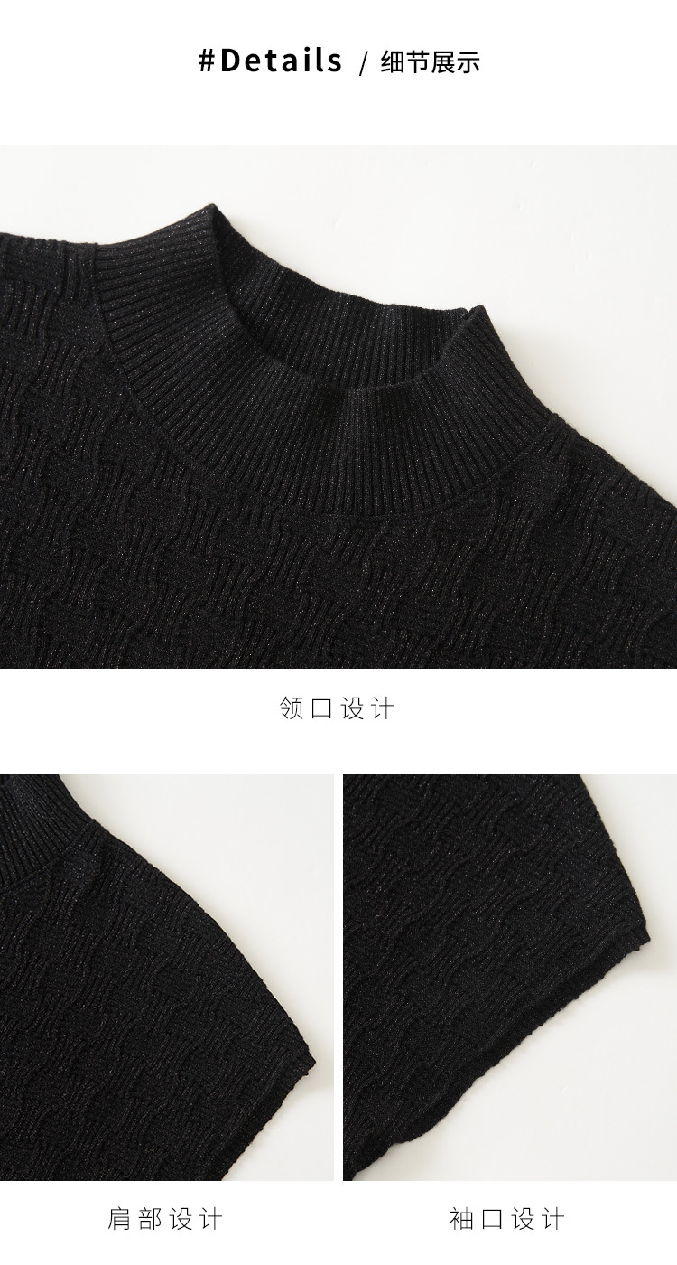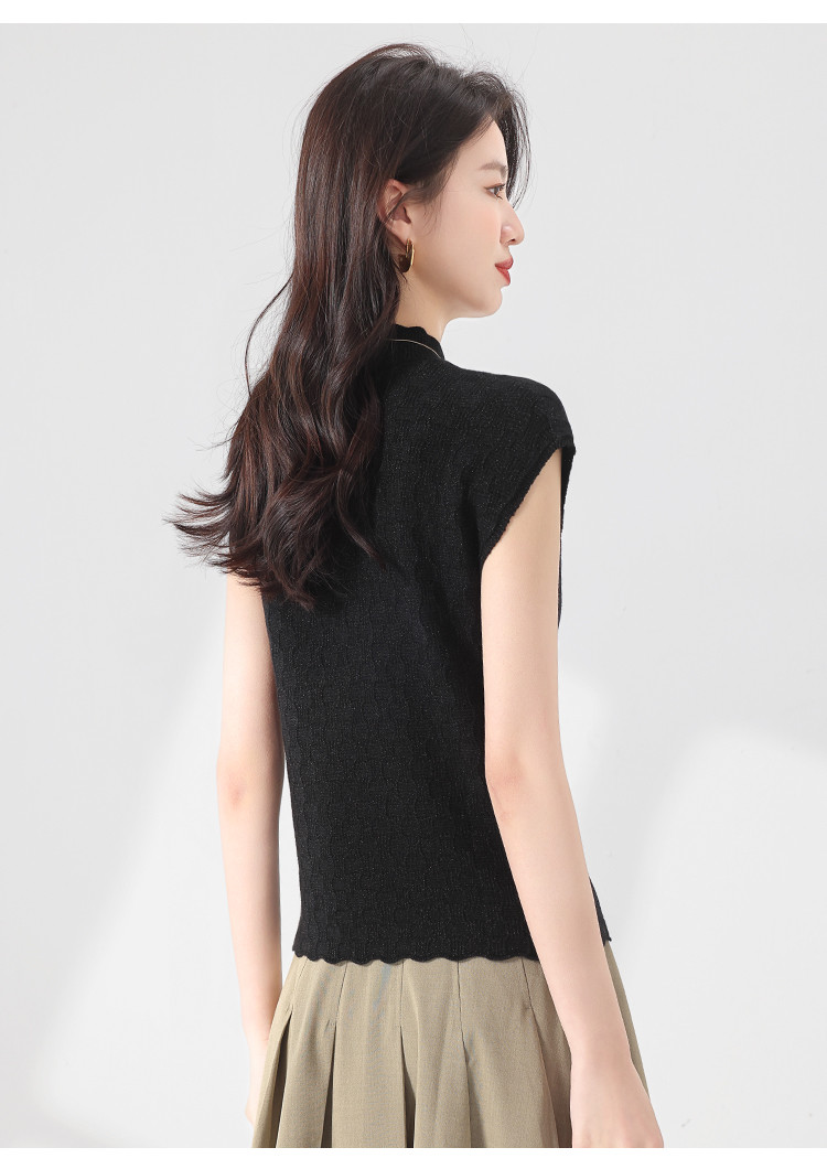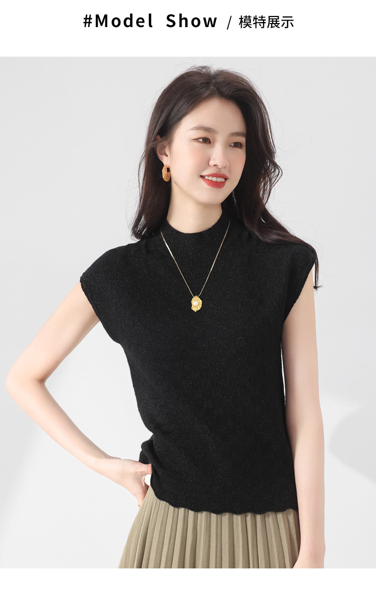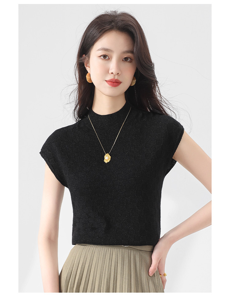 商品名称:轻薄透气简约百搭纯色高圆领含绵羊毛针织打底短袖T恤 806355